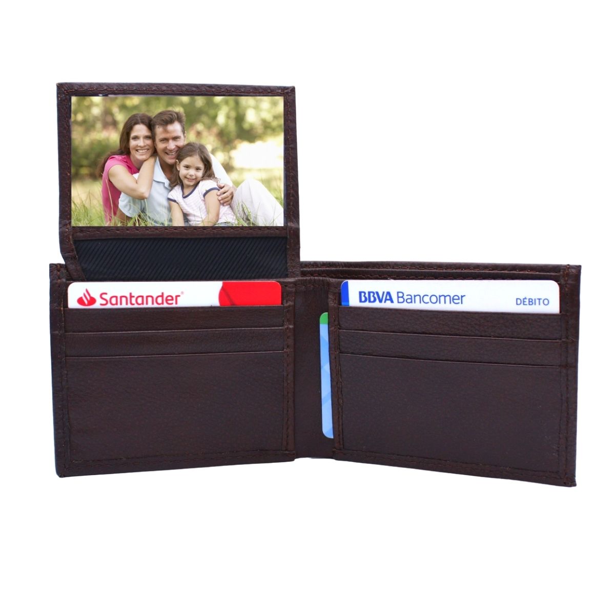 Cartera Hombre Piel Genuina Bifold División Oculta Interiores en Piel
