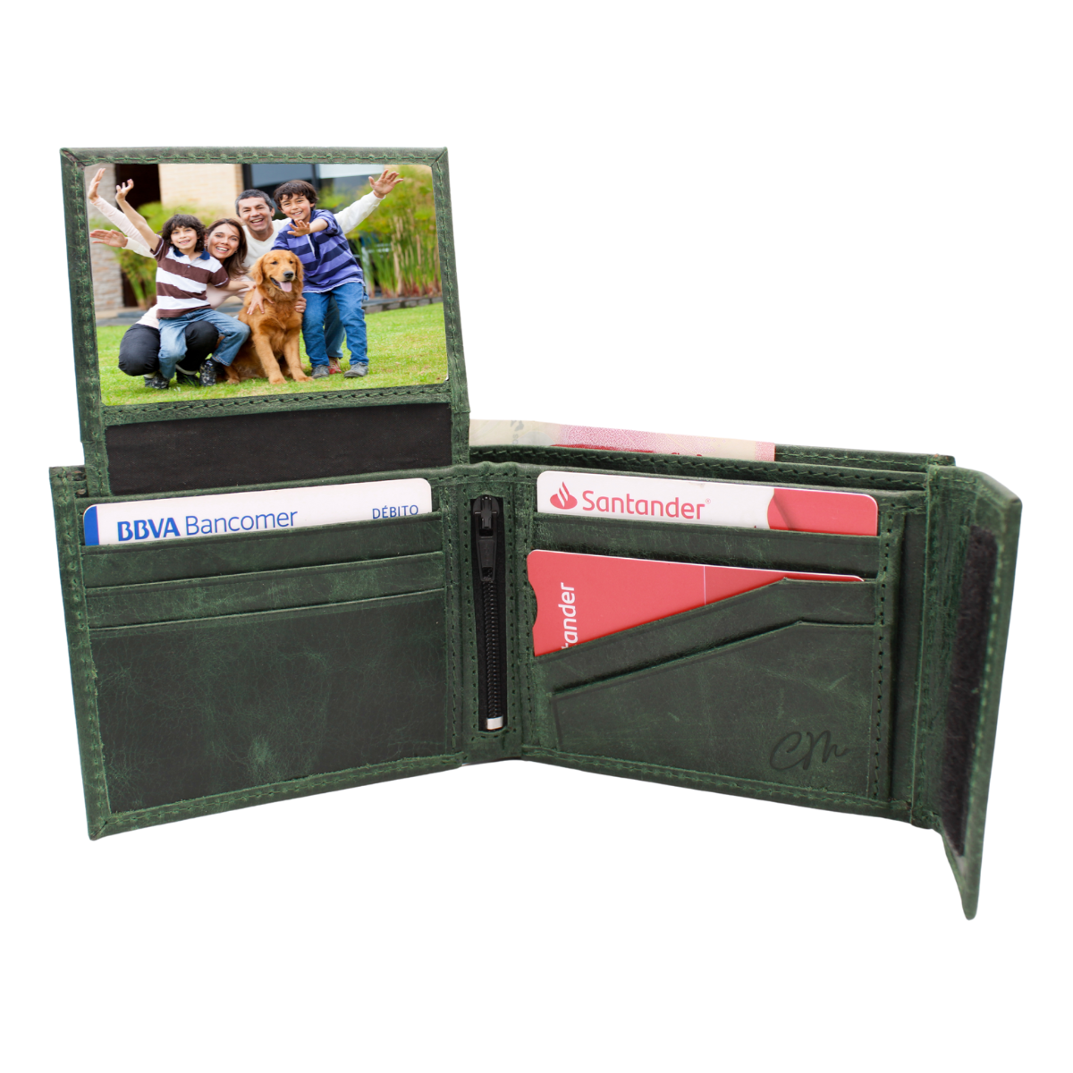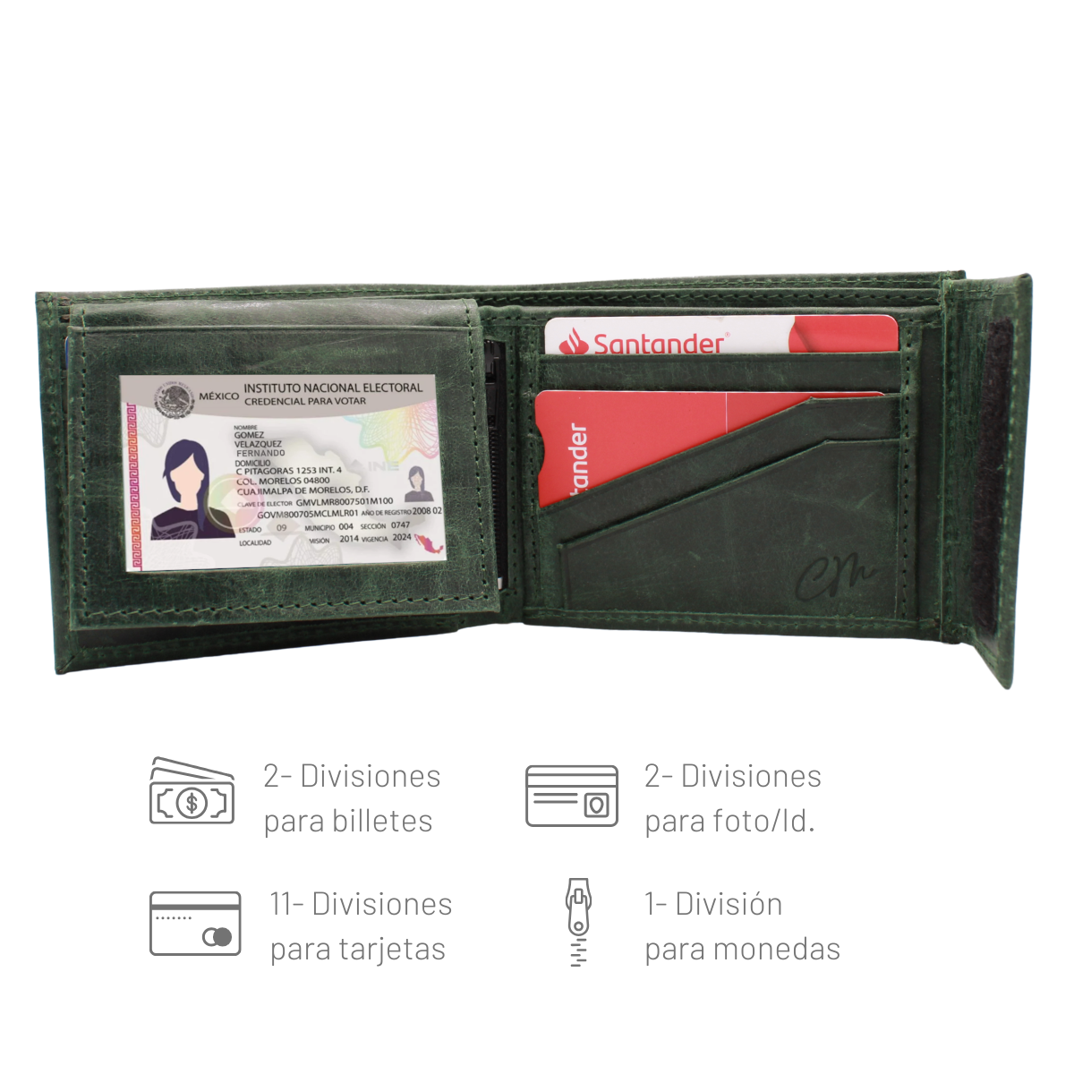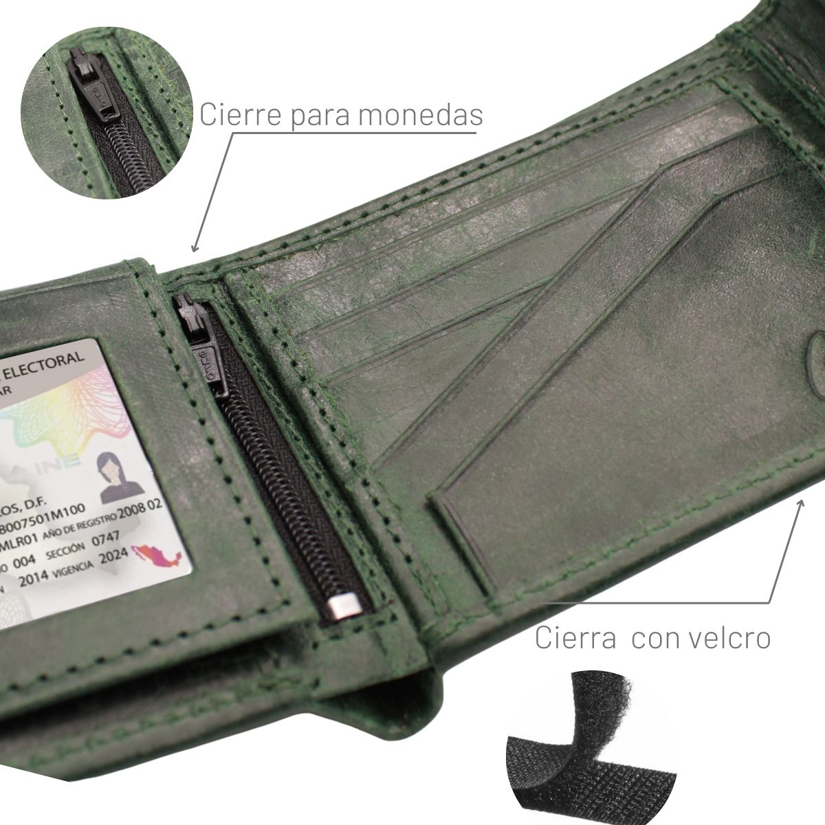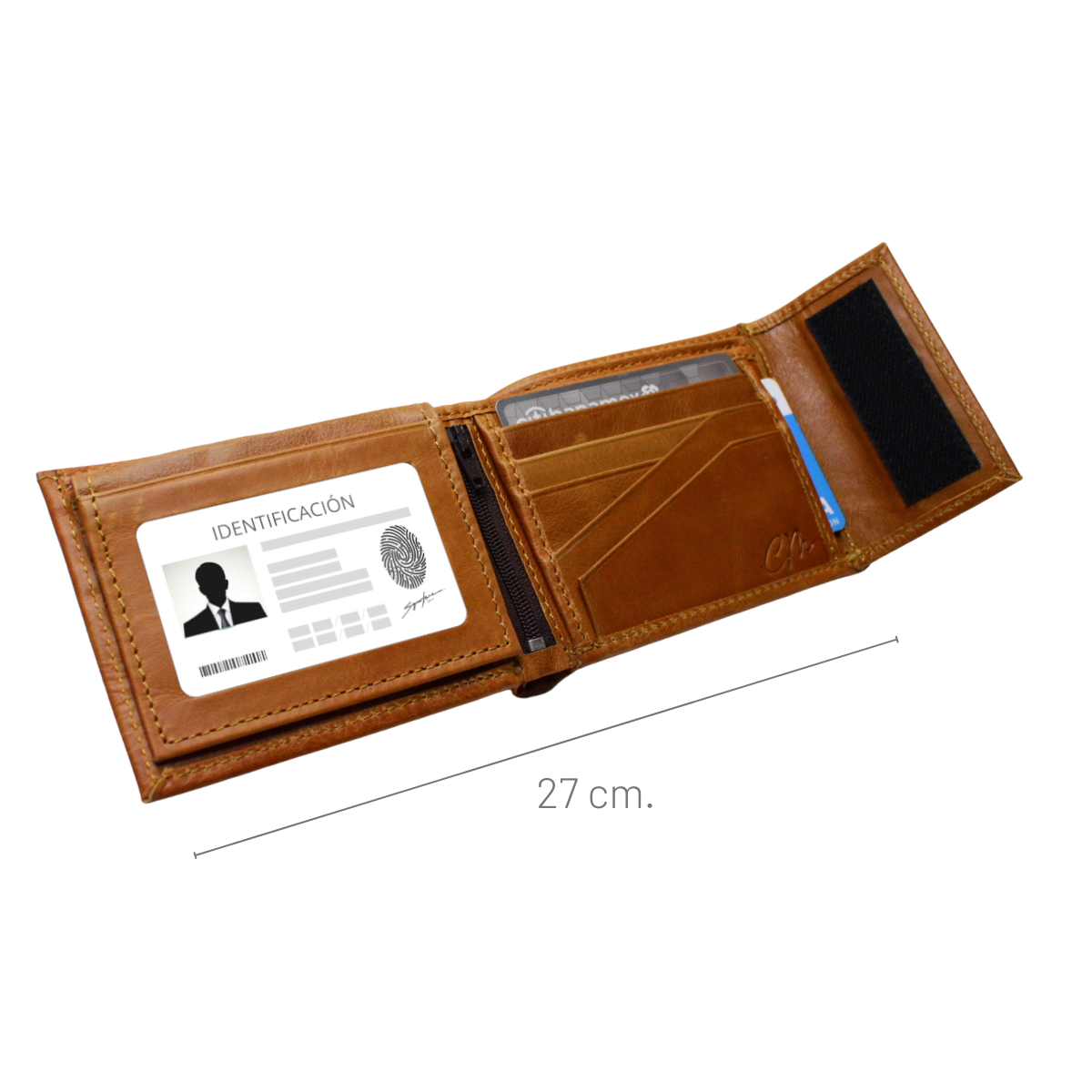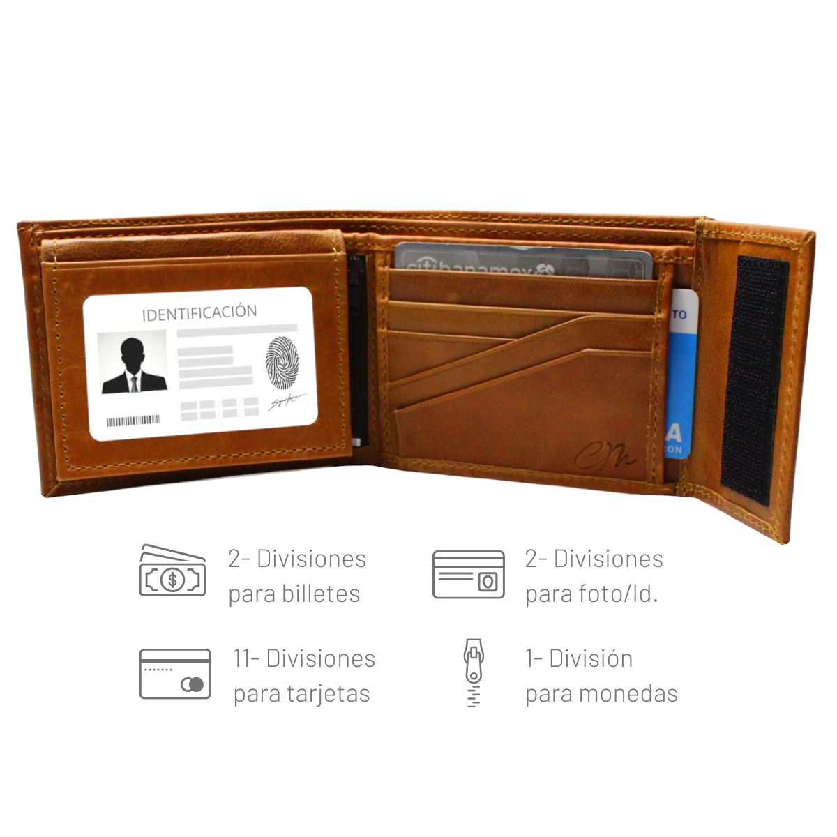 La cartera está elaborada con PIEL GENUINA, un material que mejora con el uso y ofrece durabilidad, autenticidad y estilo.