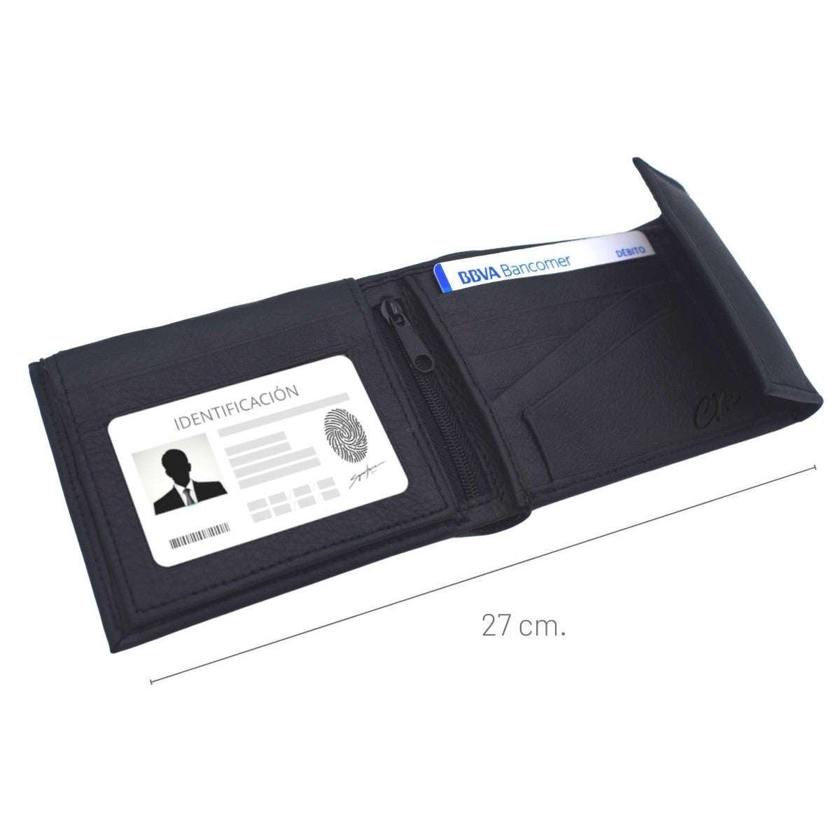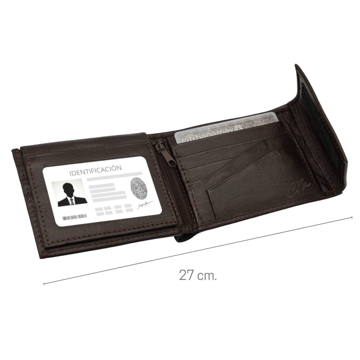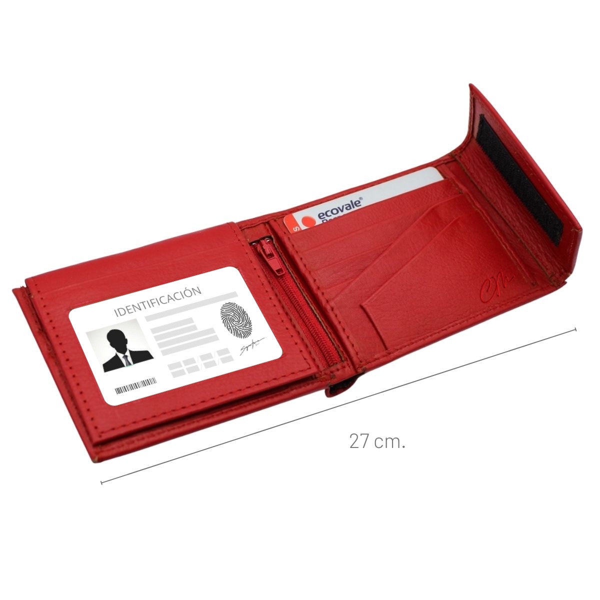 Cartera Hombre Piel Genuina Cierre Velcro Monedero Identificación Interiores en Tela