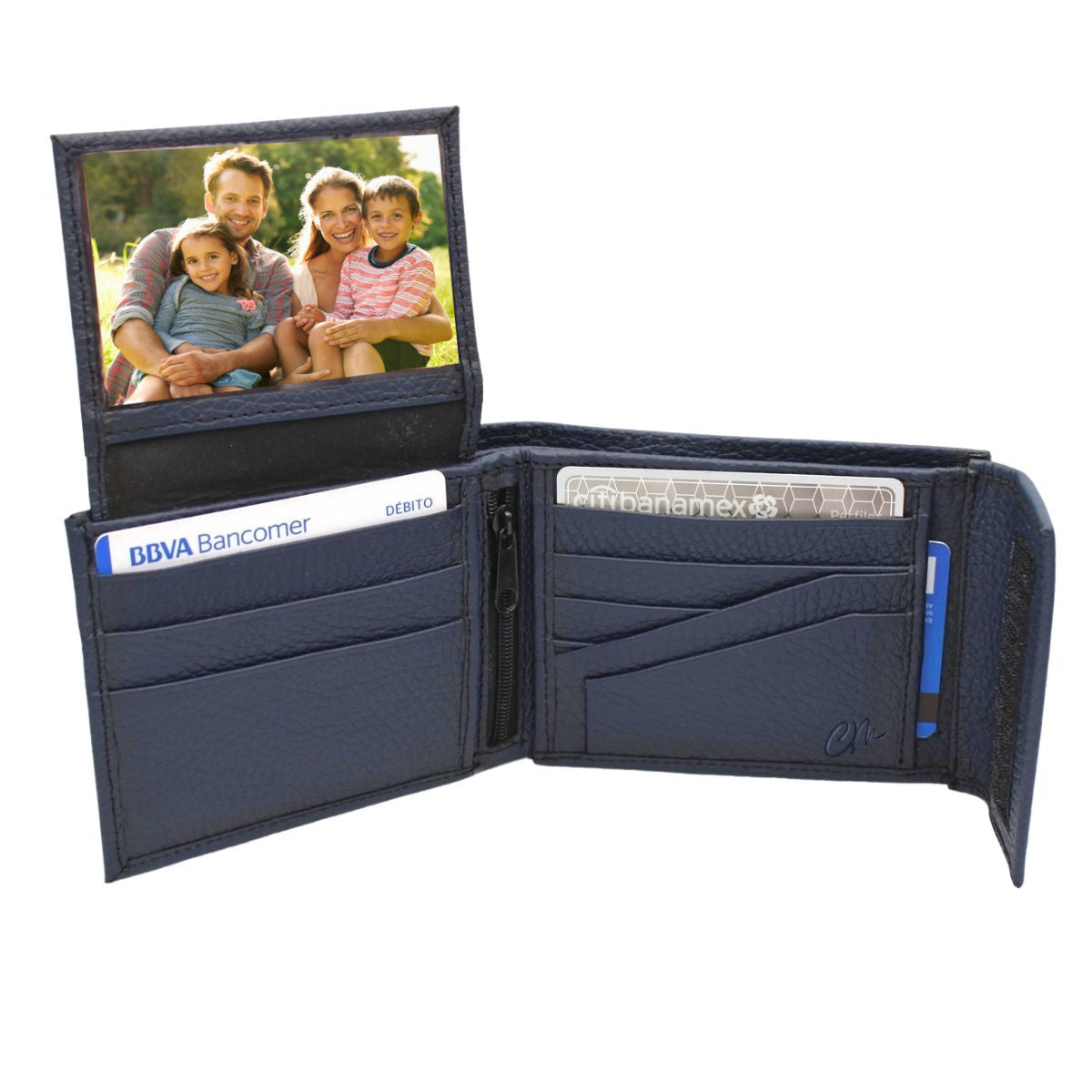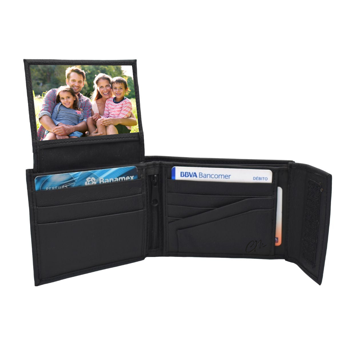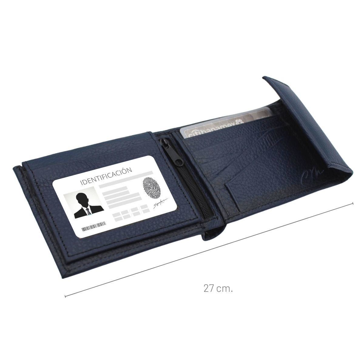 Cartera Hombre Piel Genuina Cierre Velcro Monedero Identificación Interiores en Tela