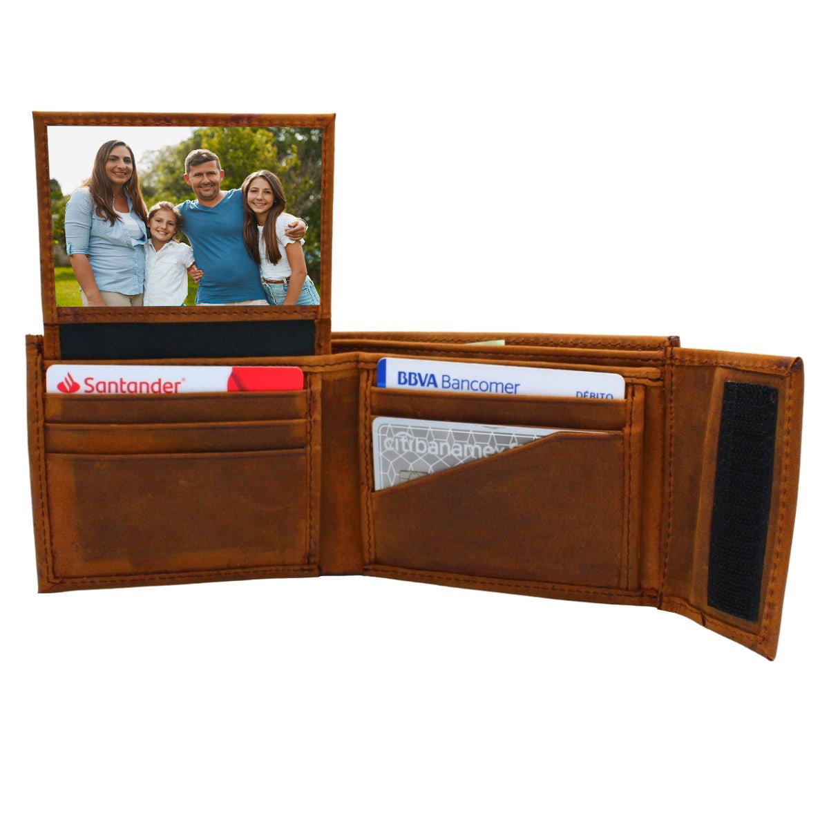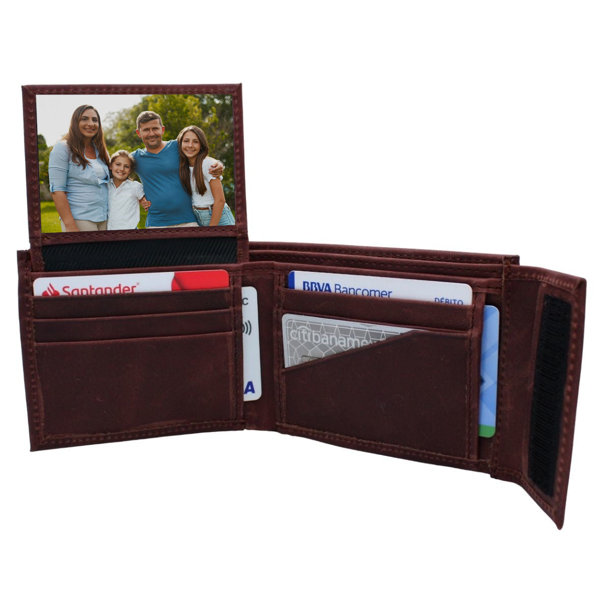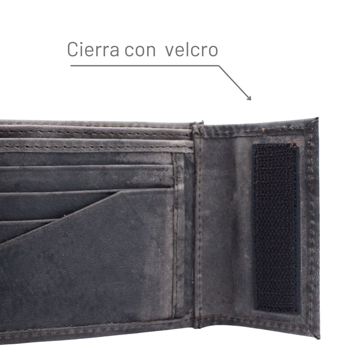 Cartera Hombre Piel Genuina Cierre Velcro Vintage Interiores en Tela