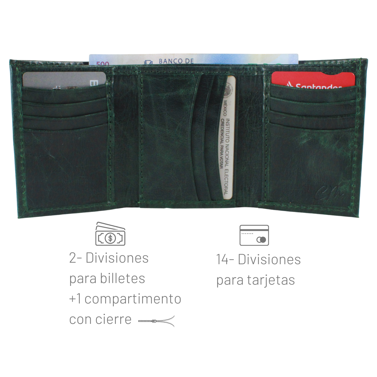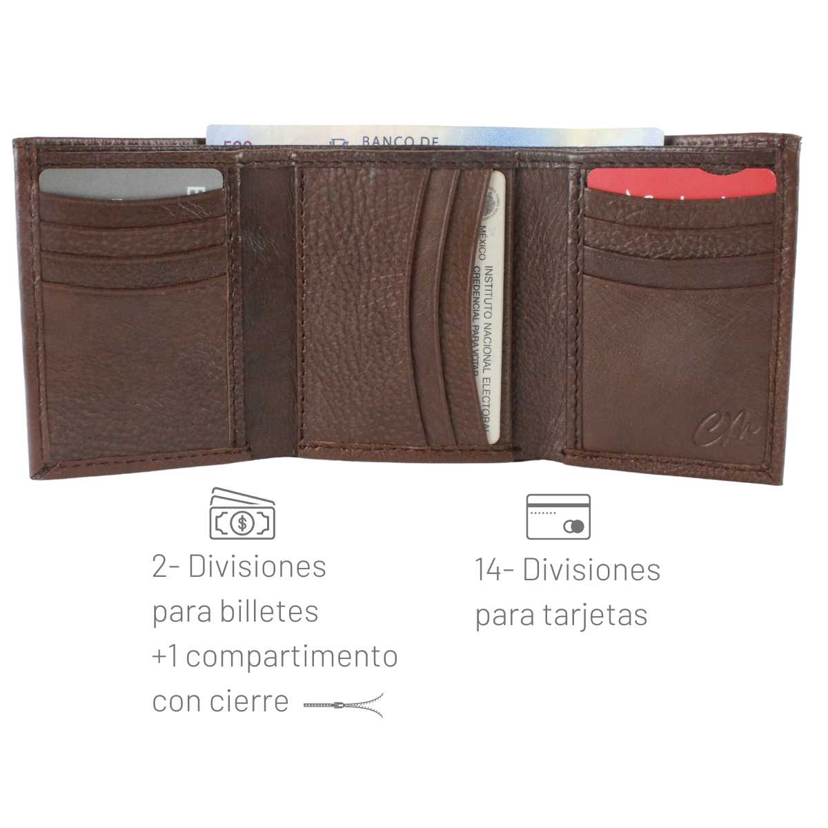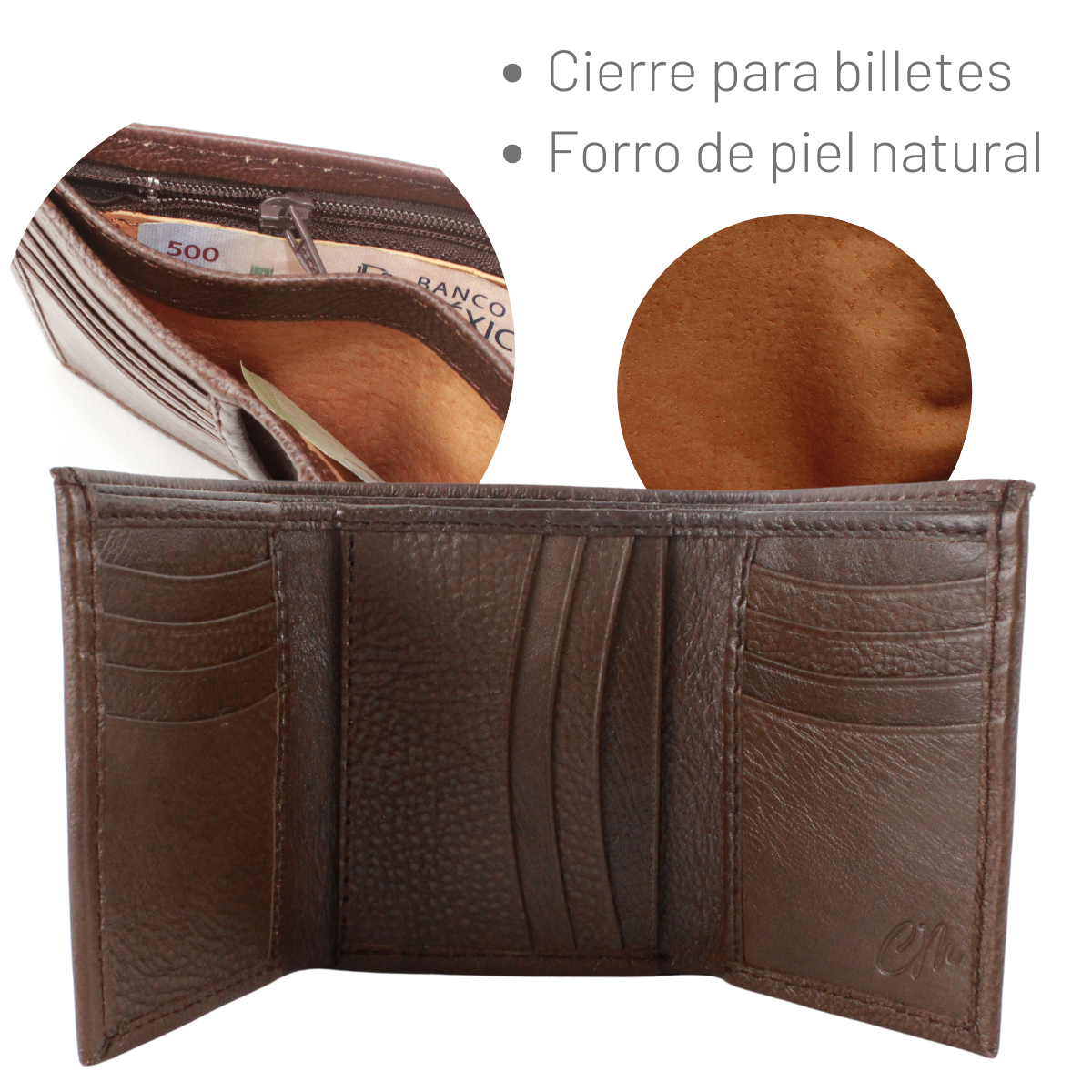 Cartera Hombre Piel Genuina Triple Cierre Interno Interiores en Piel