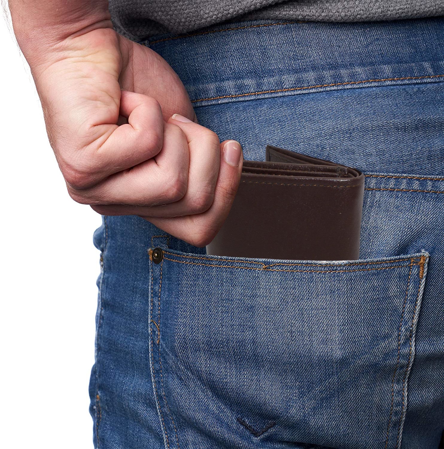 Cartera Hombre Piel Genuina Triple Compacta Interiores en Tela