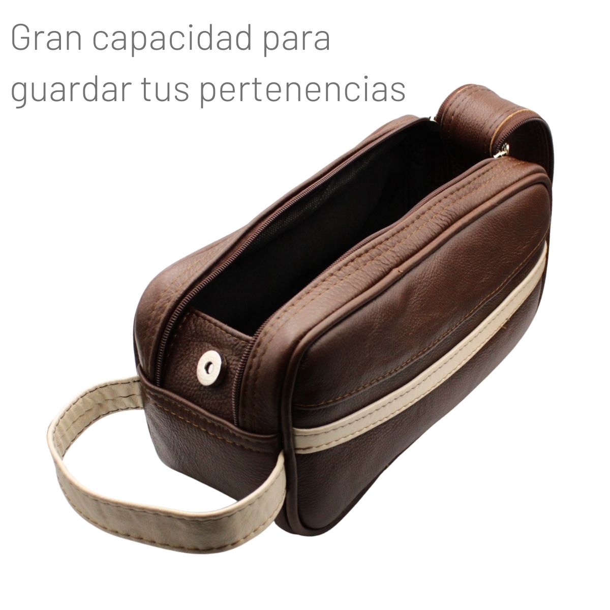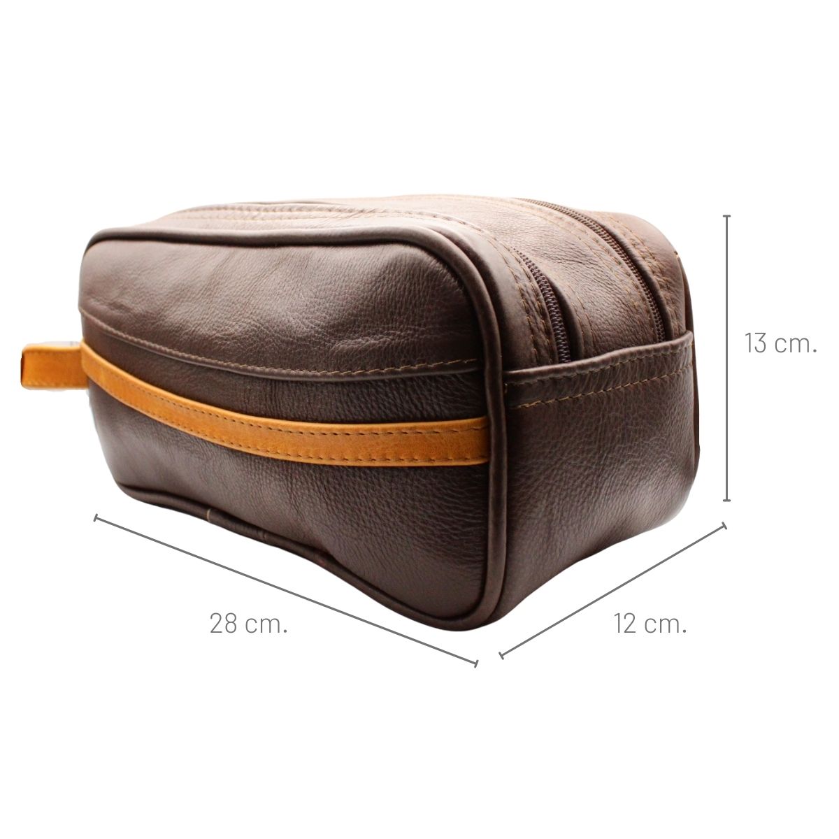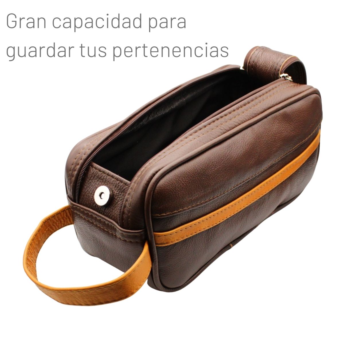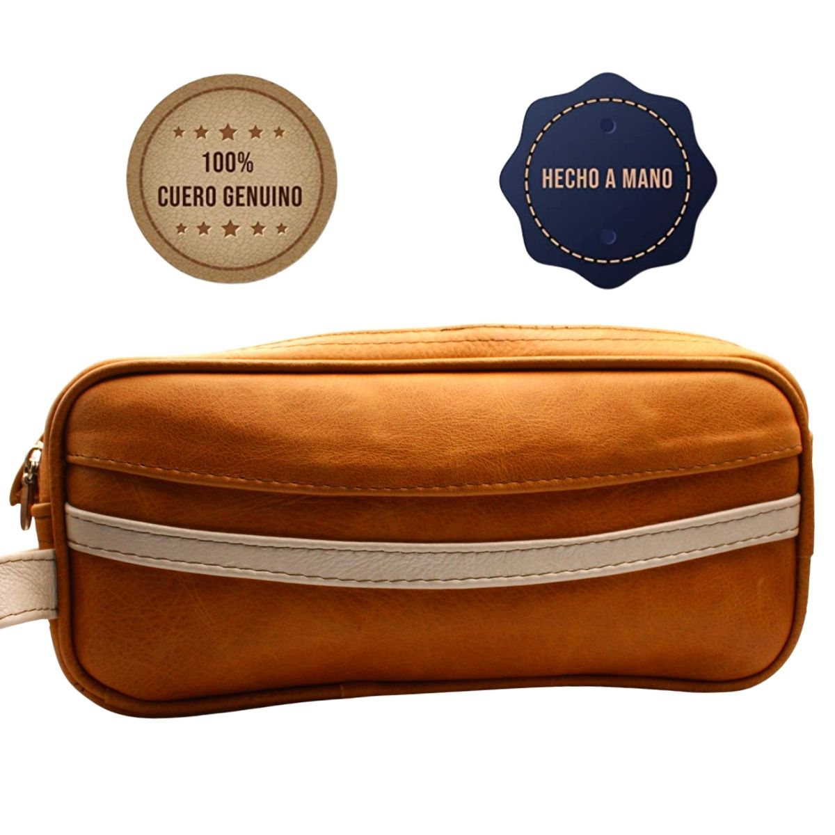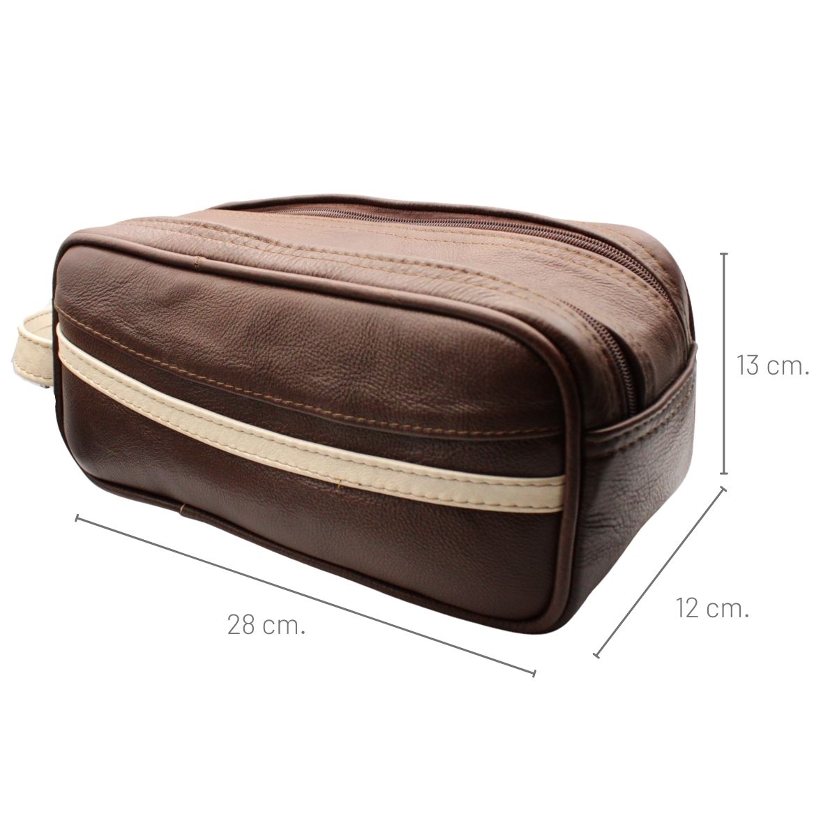 Neceser Hombre Piel Genuina Franja Interiores en Tela