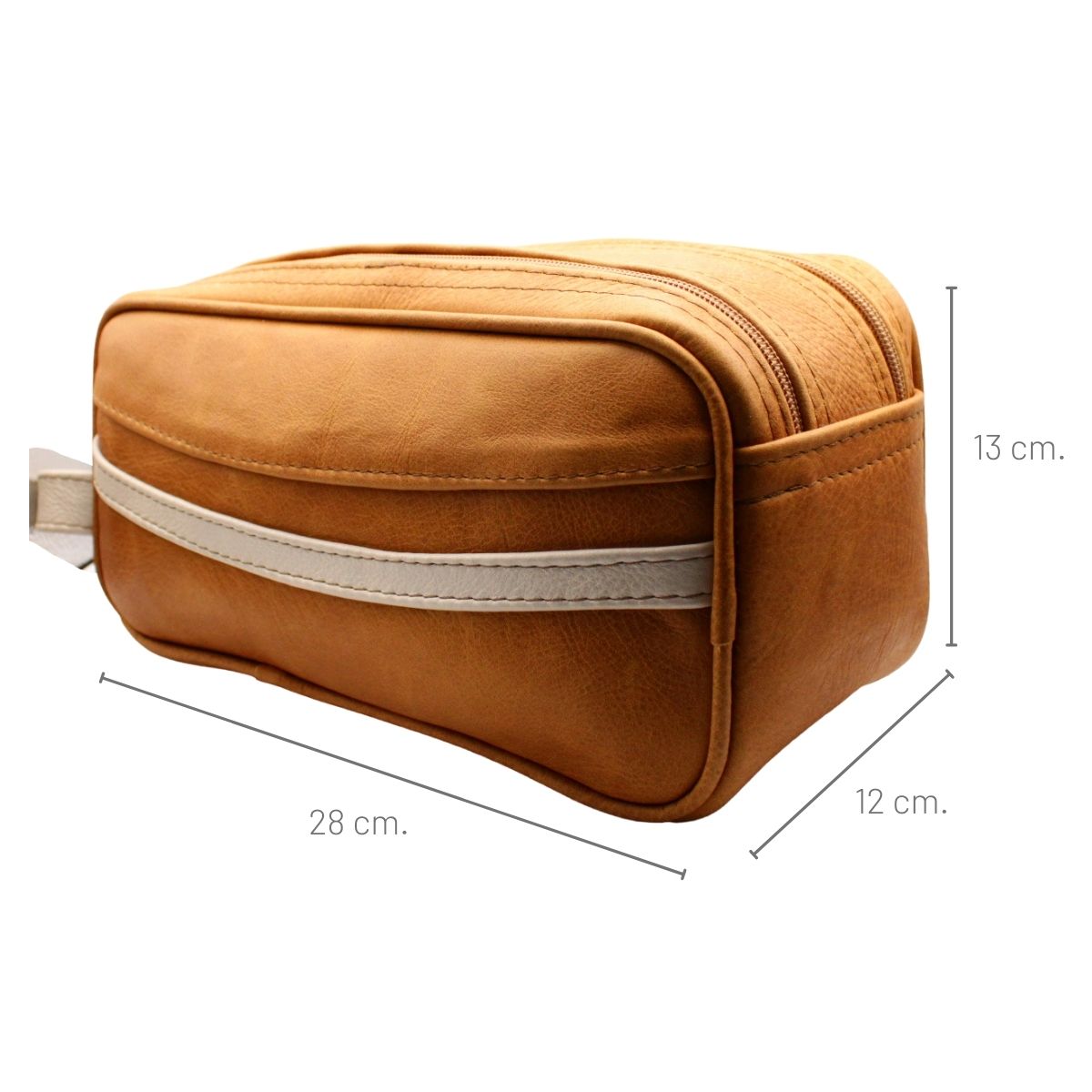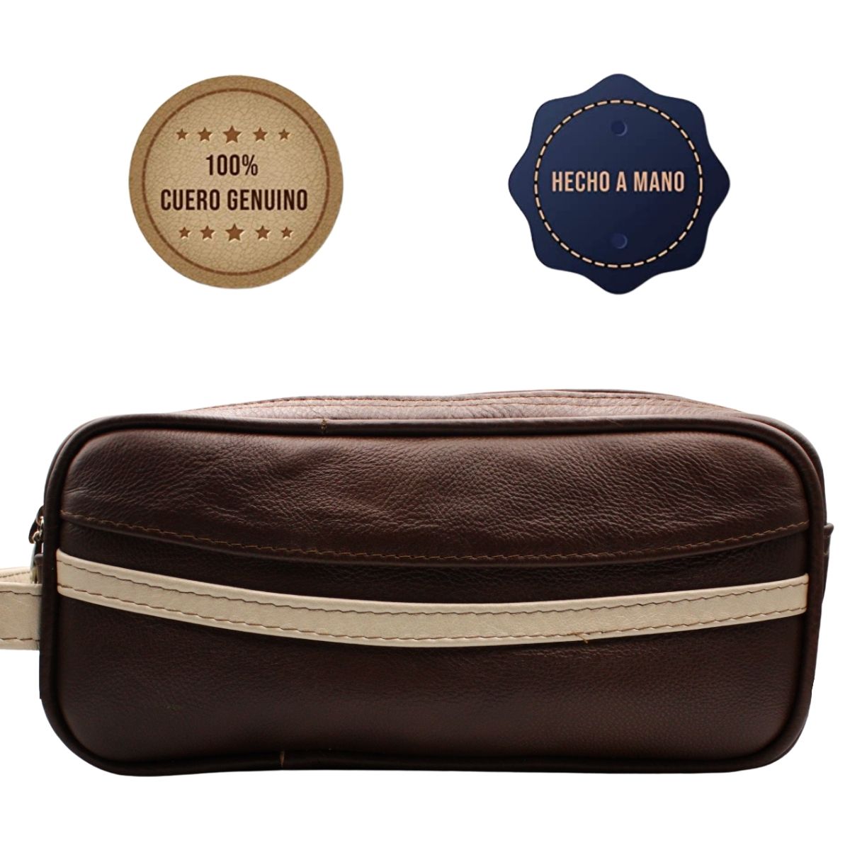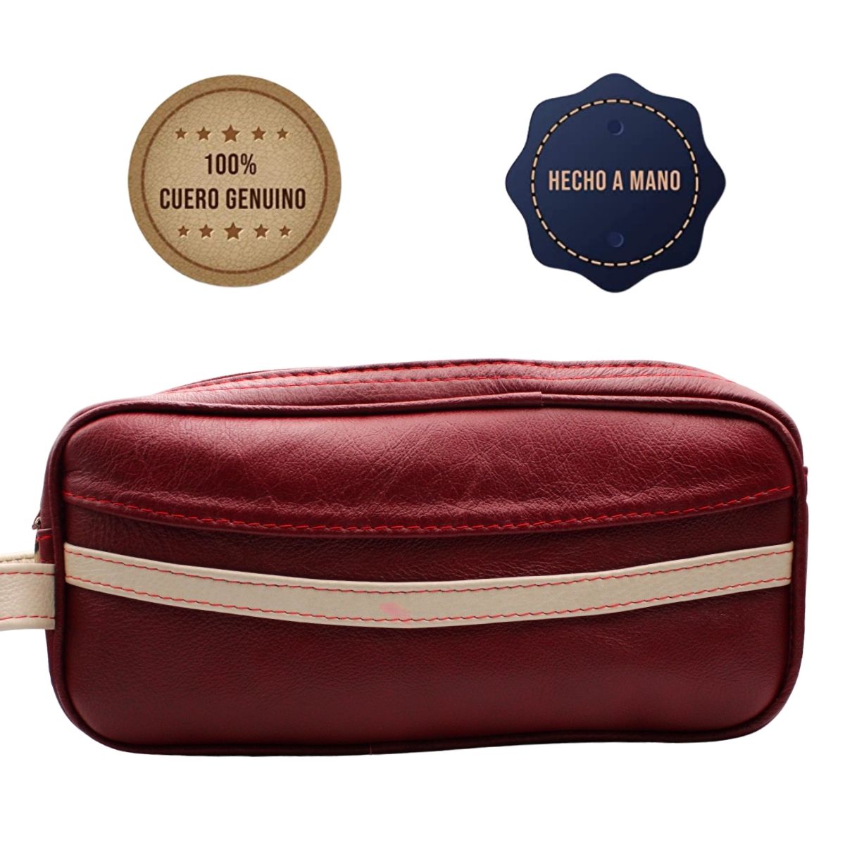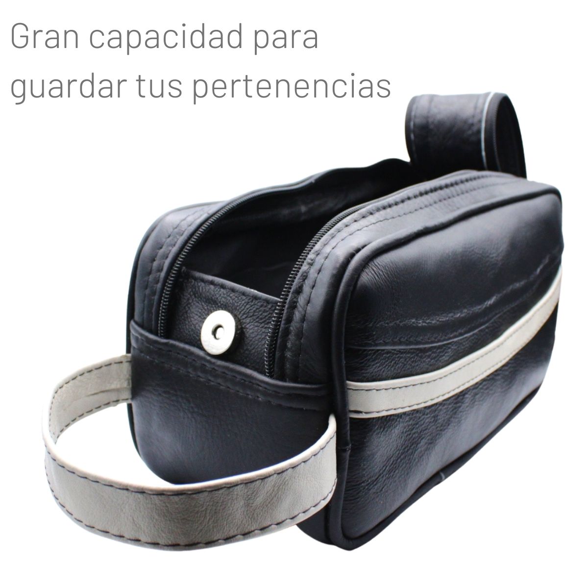 Neceser Hombre Piel Genuina Franja Interiores en Tela