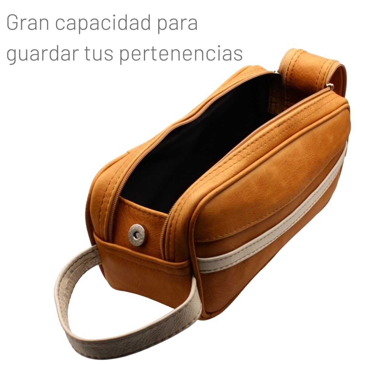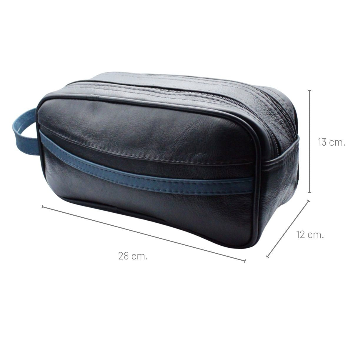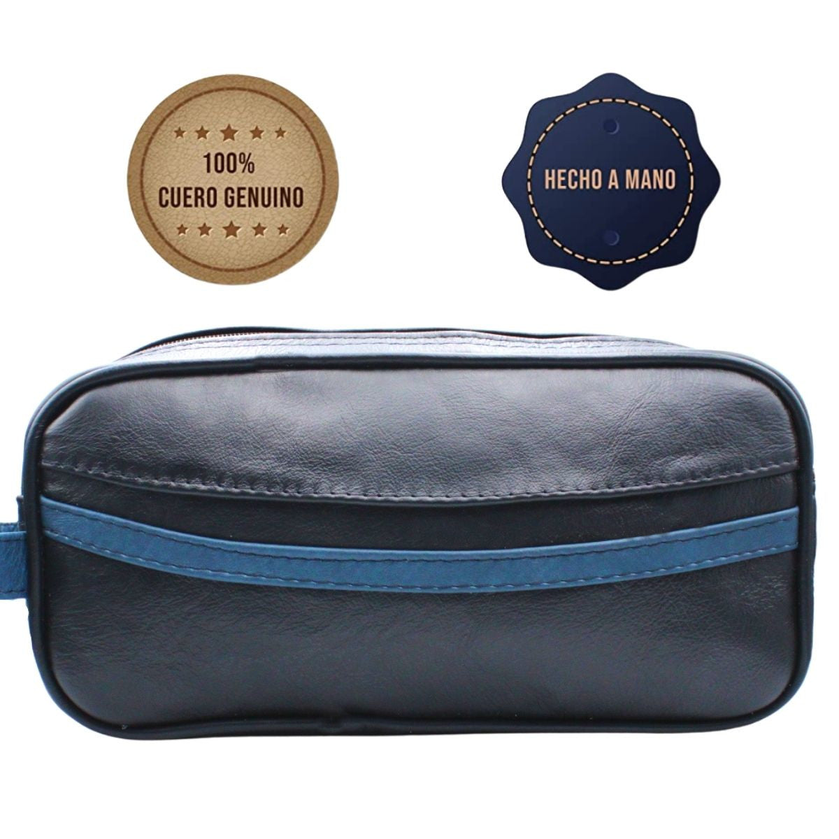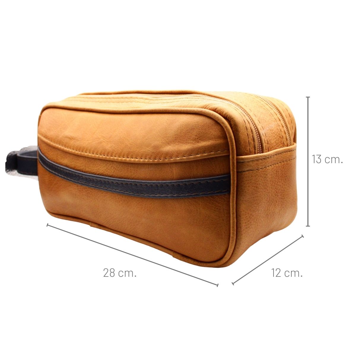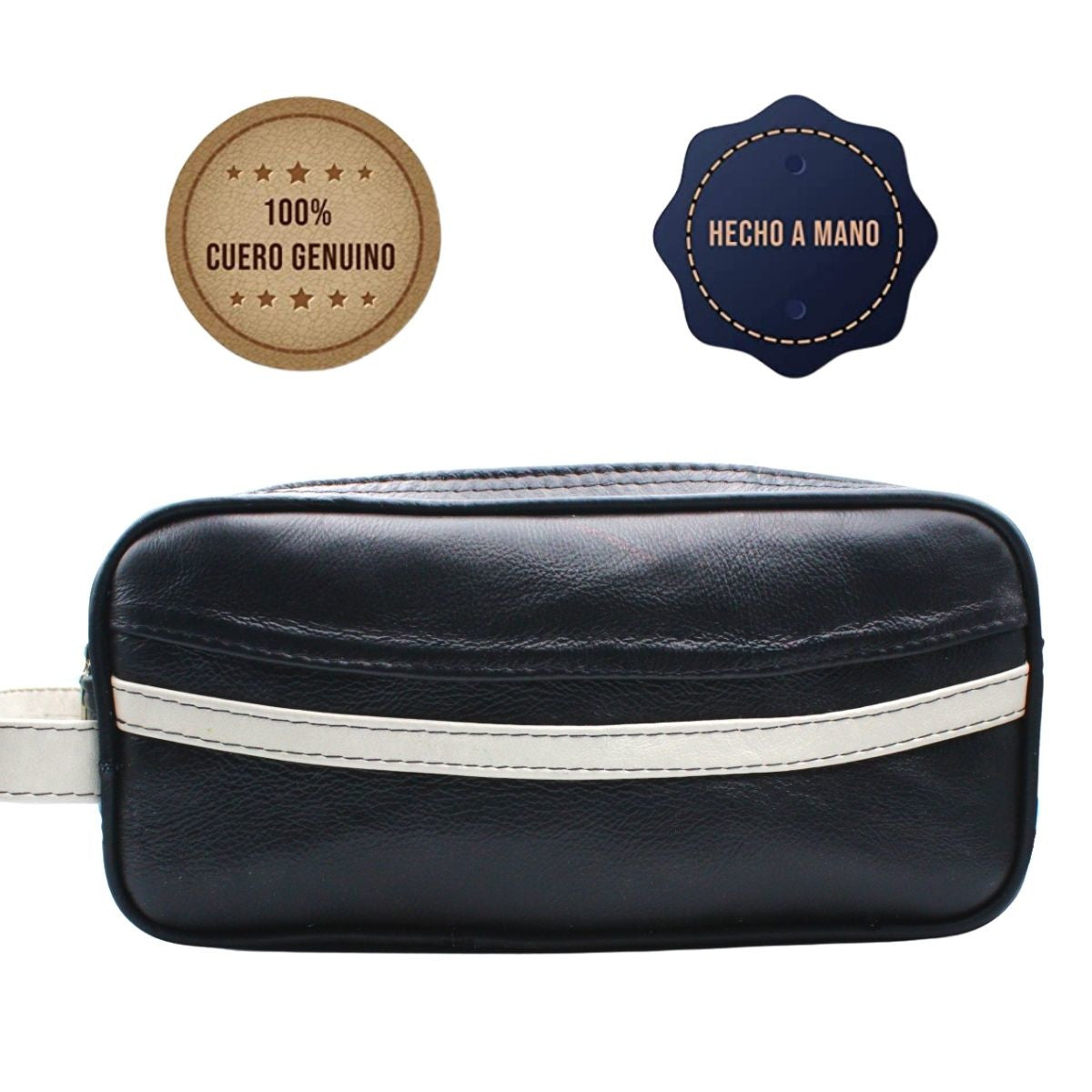 Neceser Hombre Piel Genuina Franja Interiores en Tela