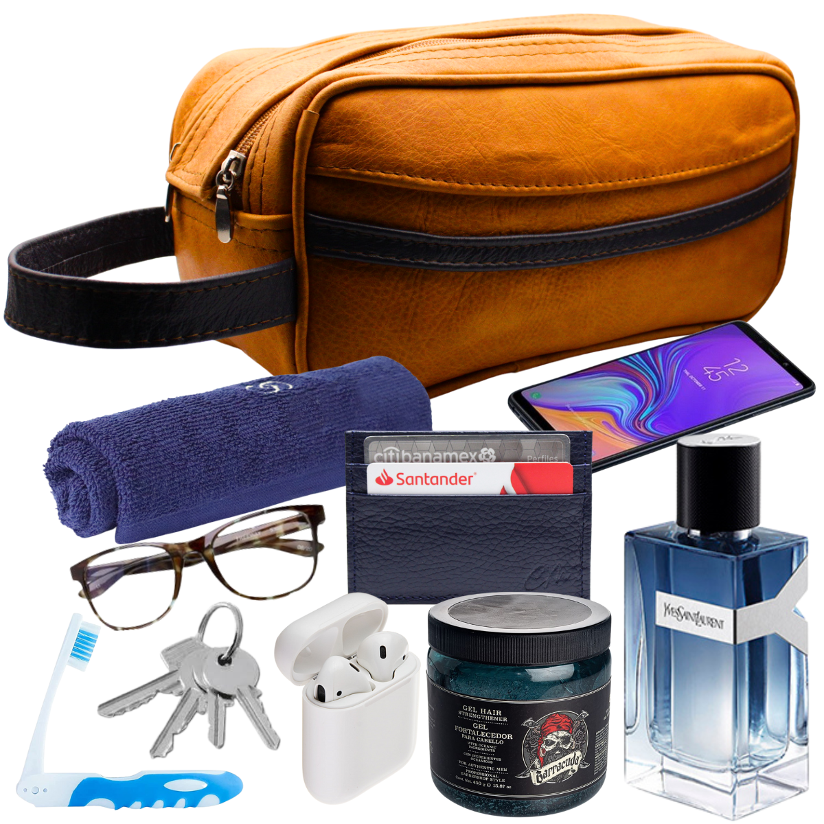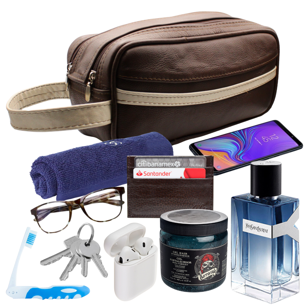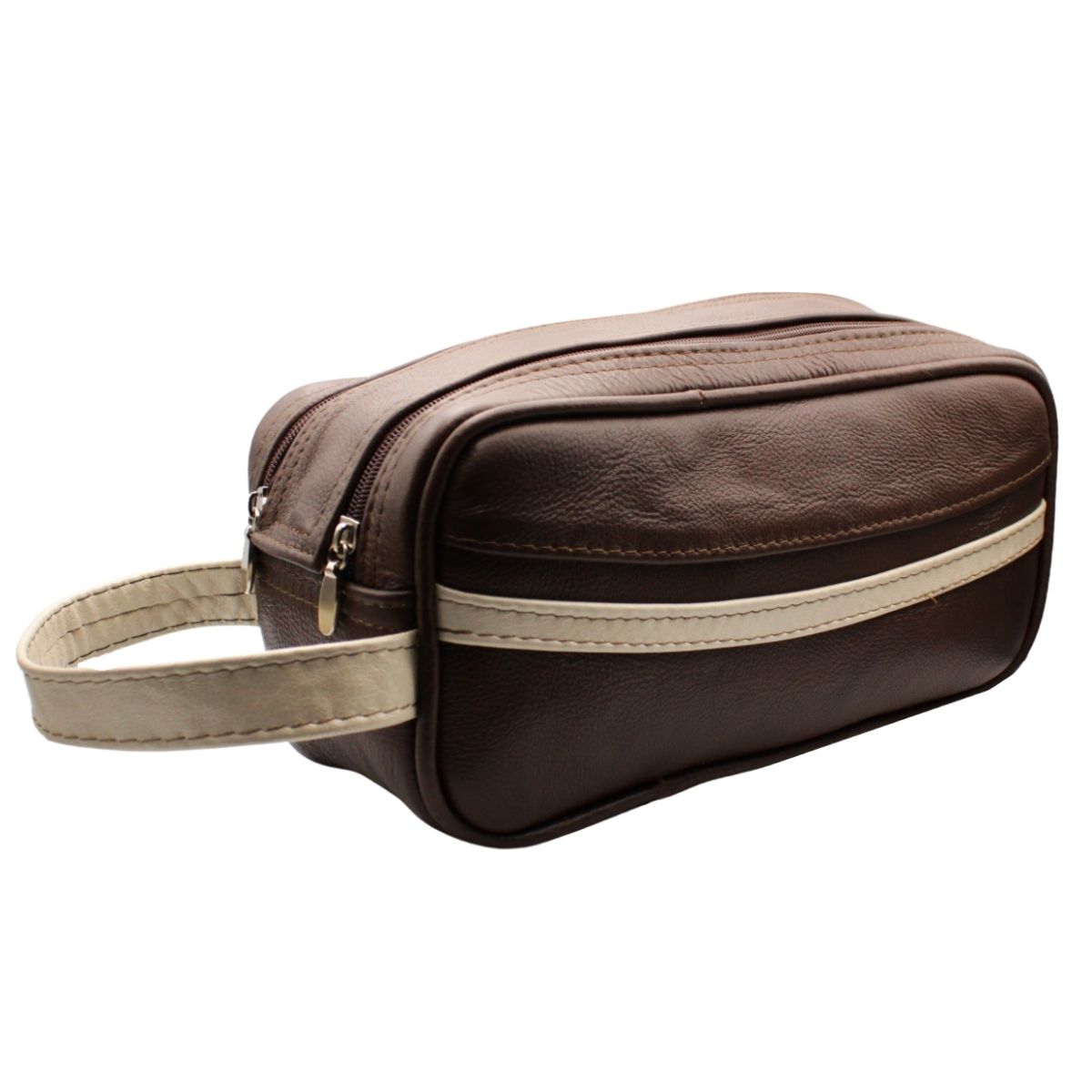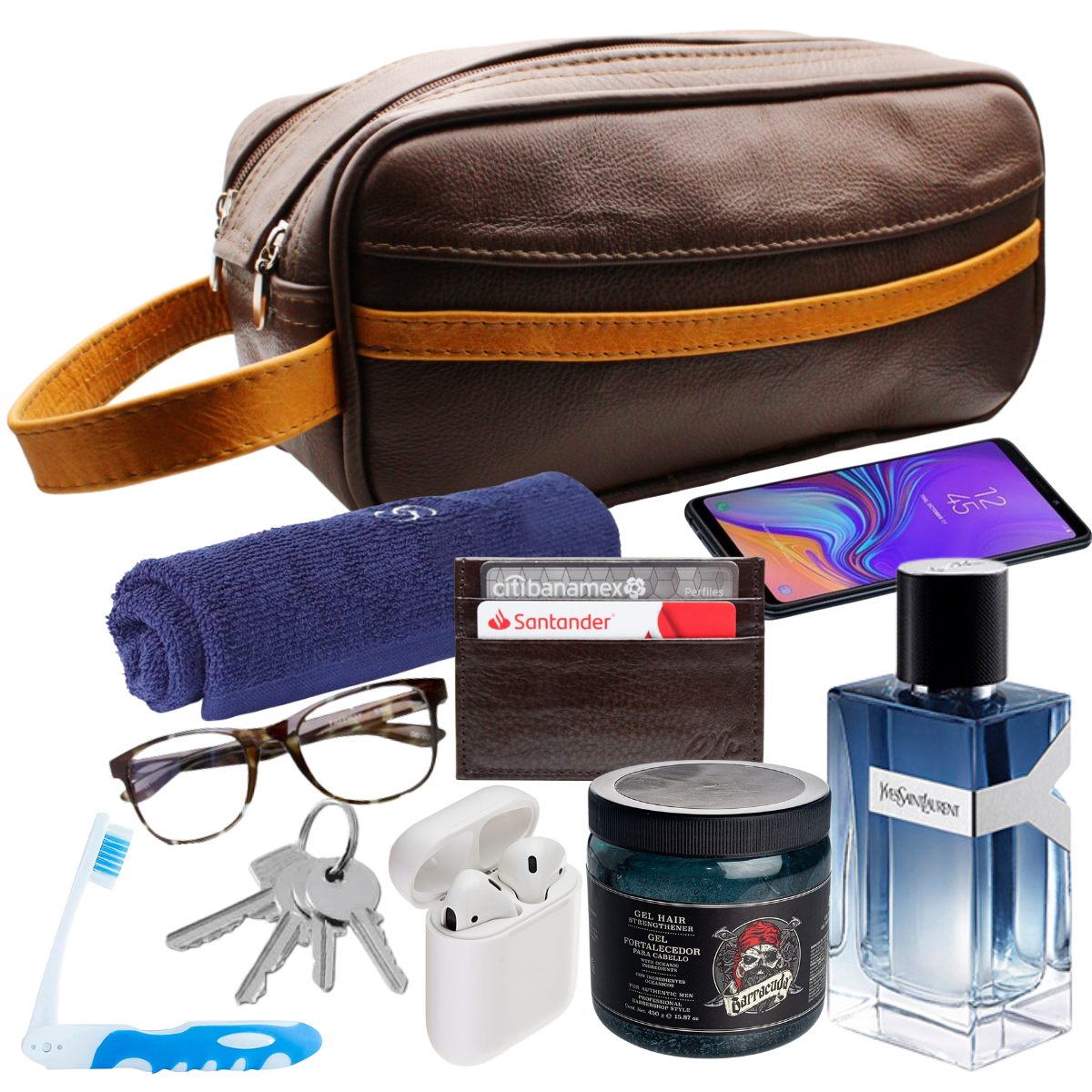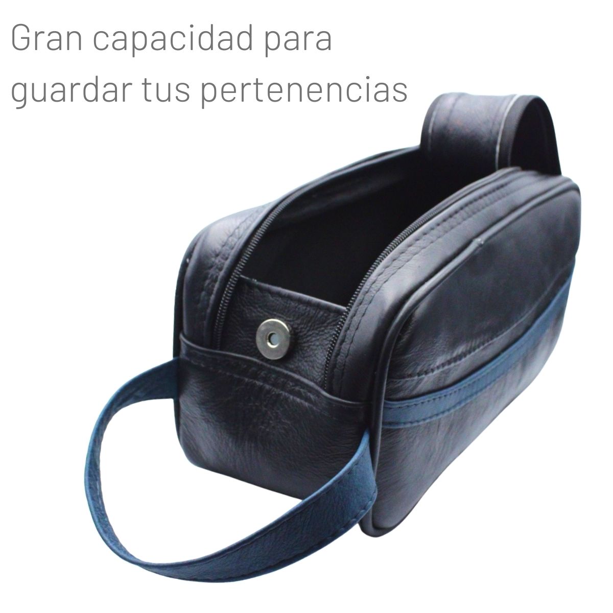 Neceser Hombre Piel Genuina Franja Interiores en Tela