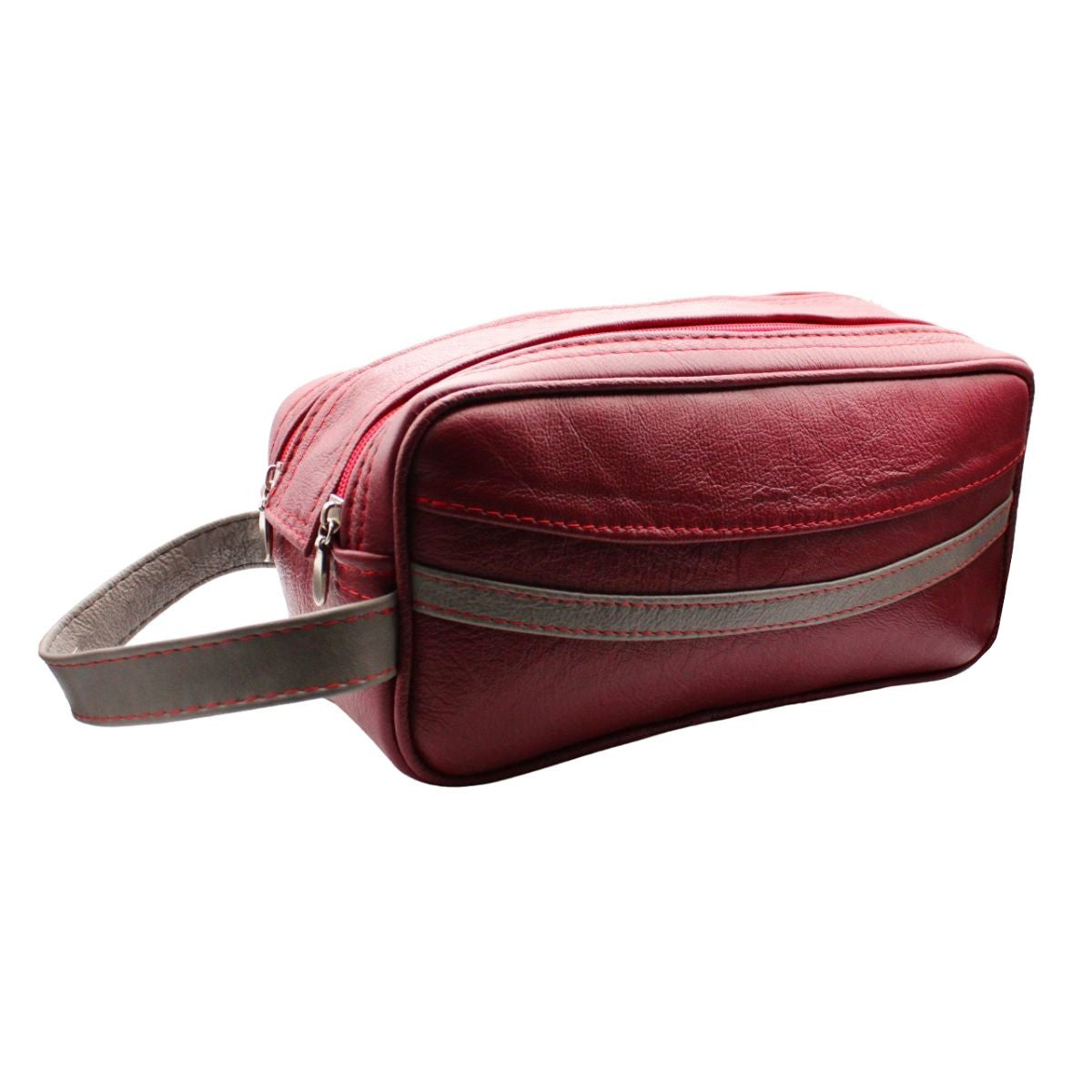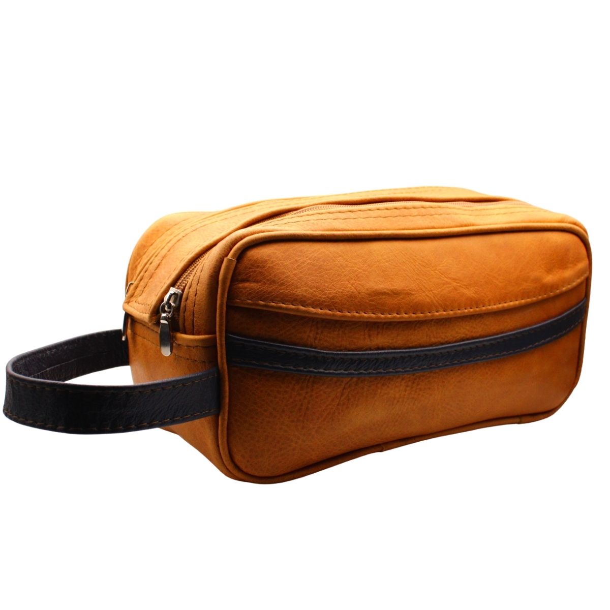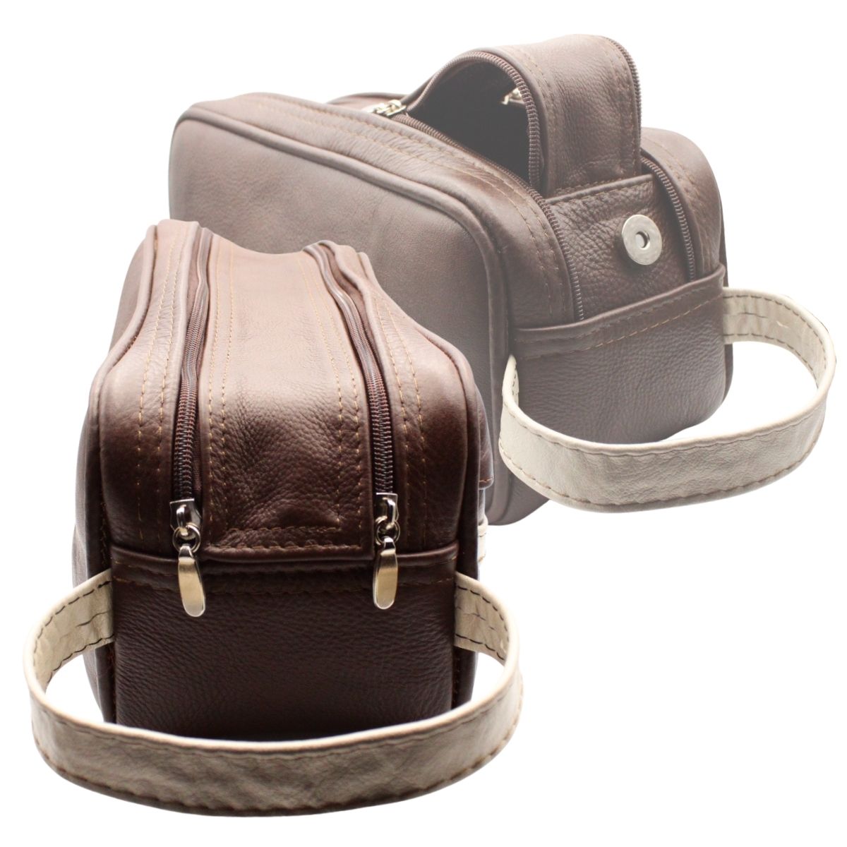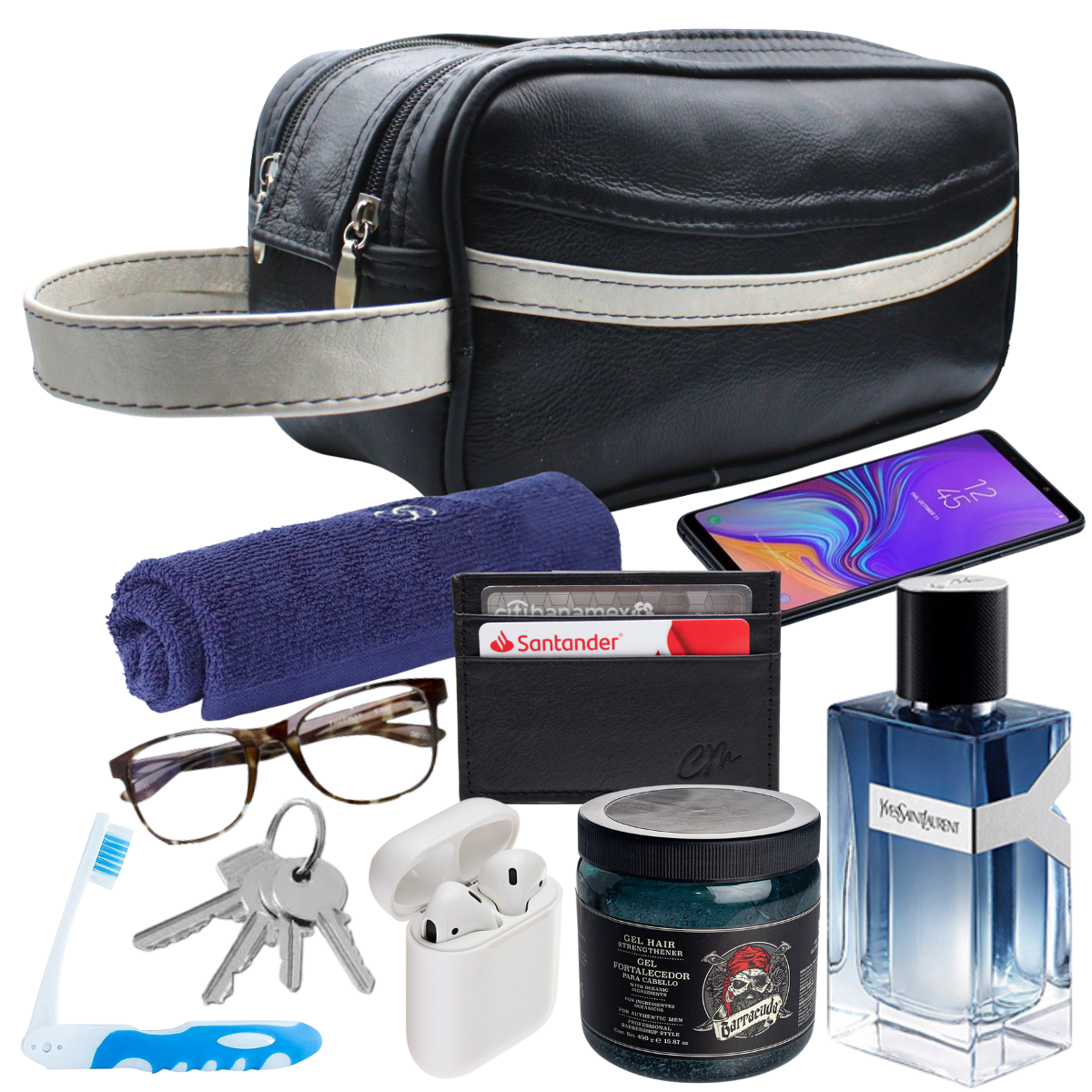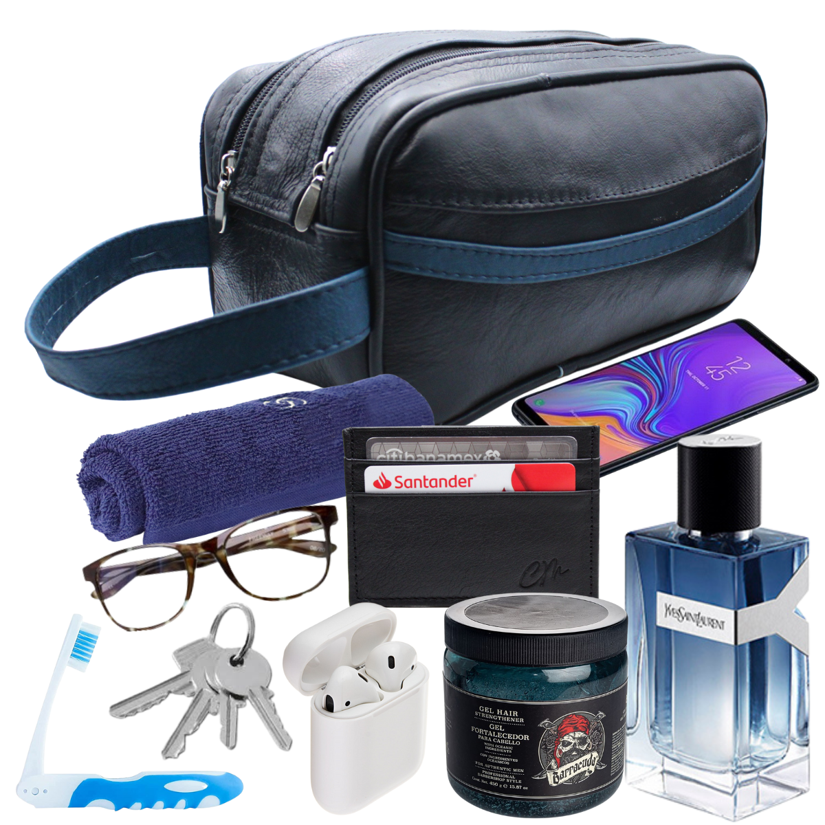 Neceser Hombre Piel Genuina Franja Interiores en Tela
