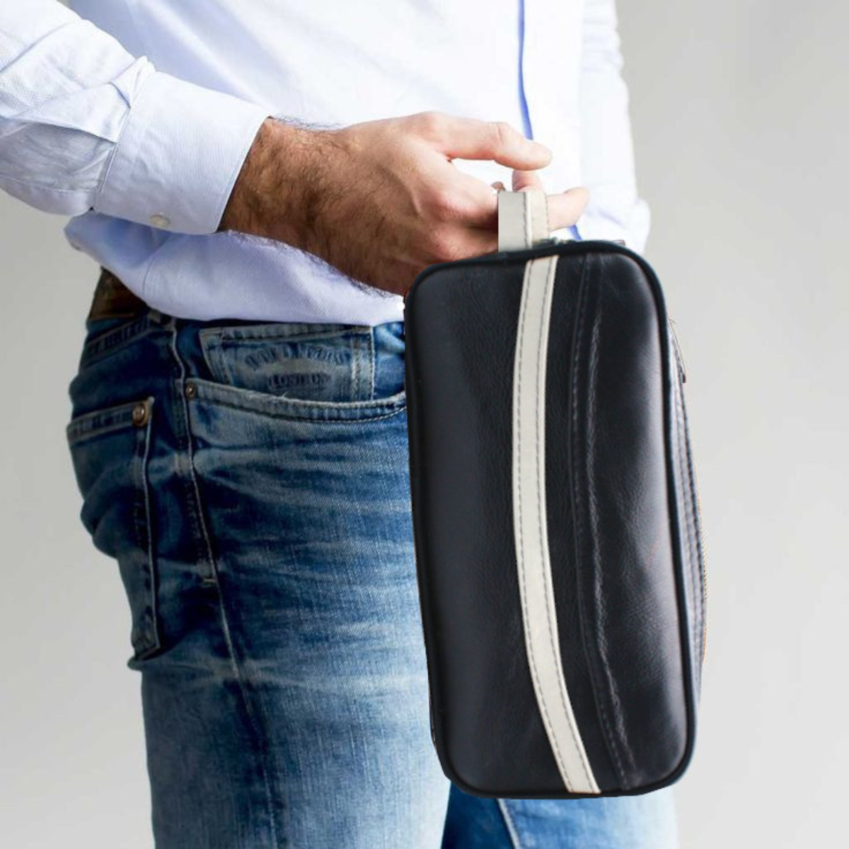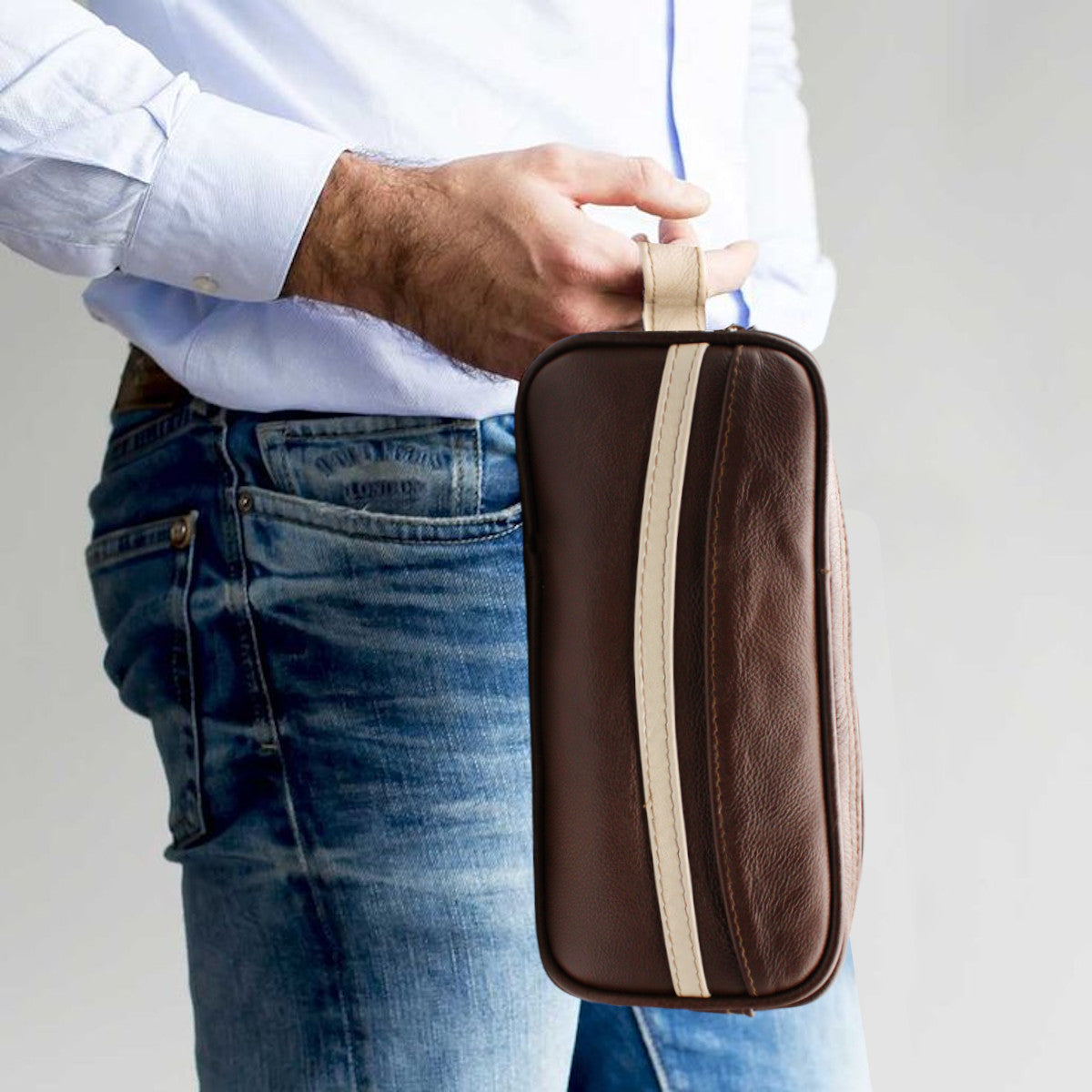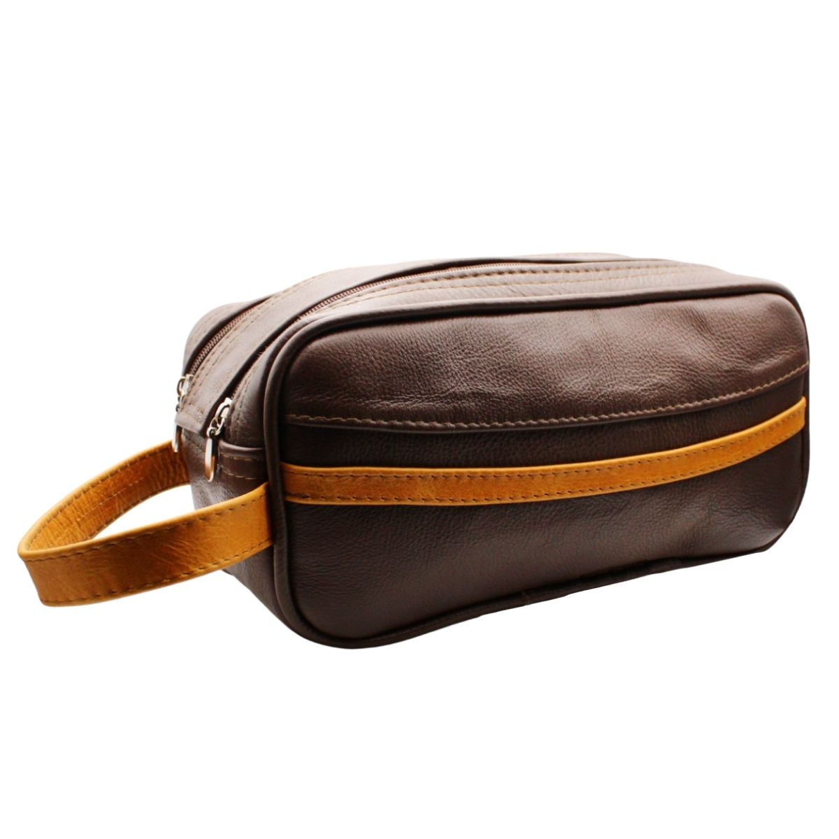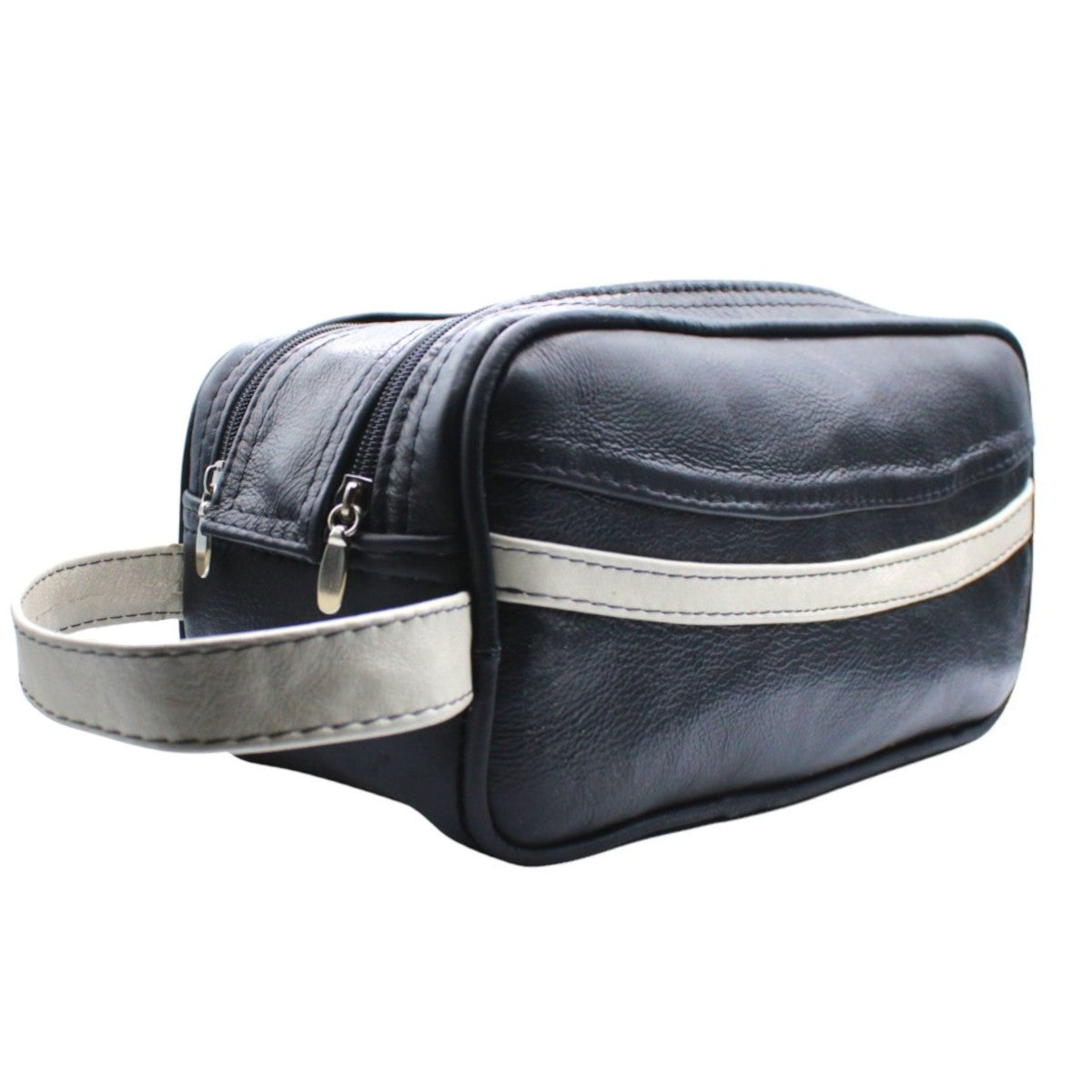 Neceser Hombre Piel Genuina Franja Interiores en Tela