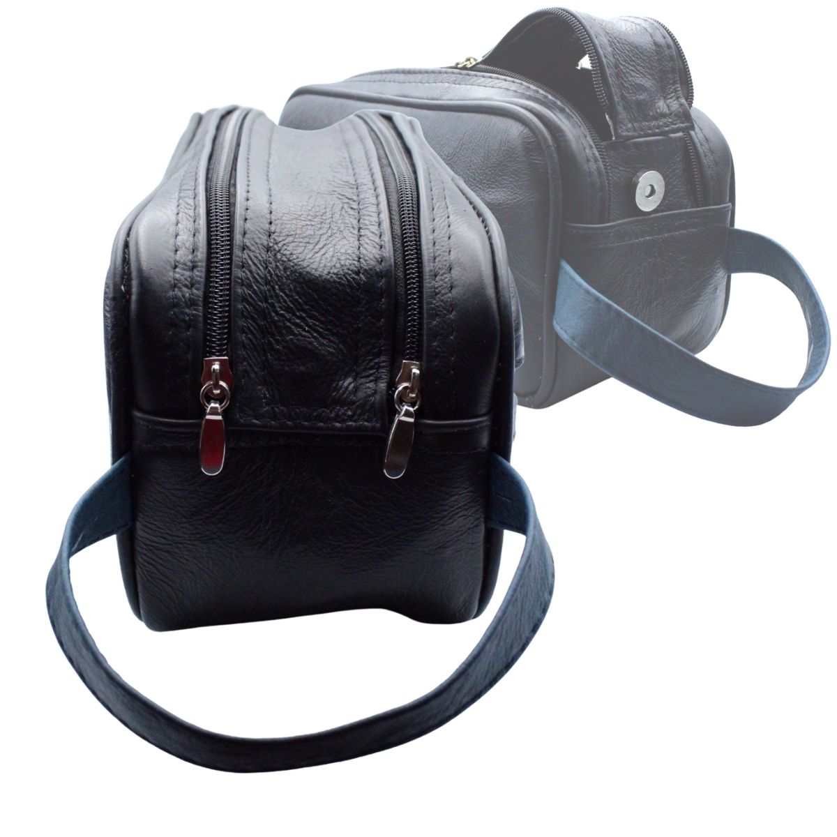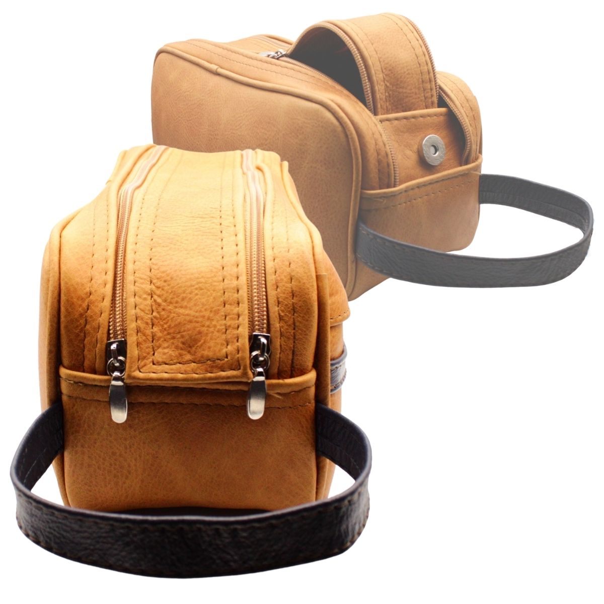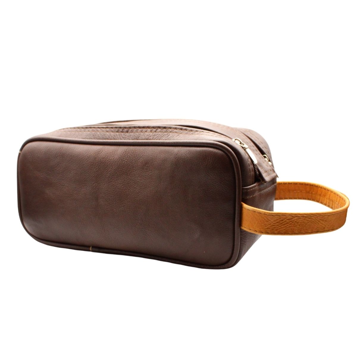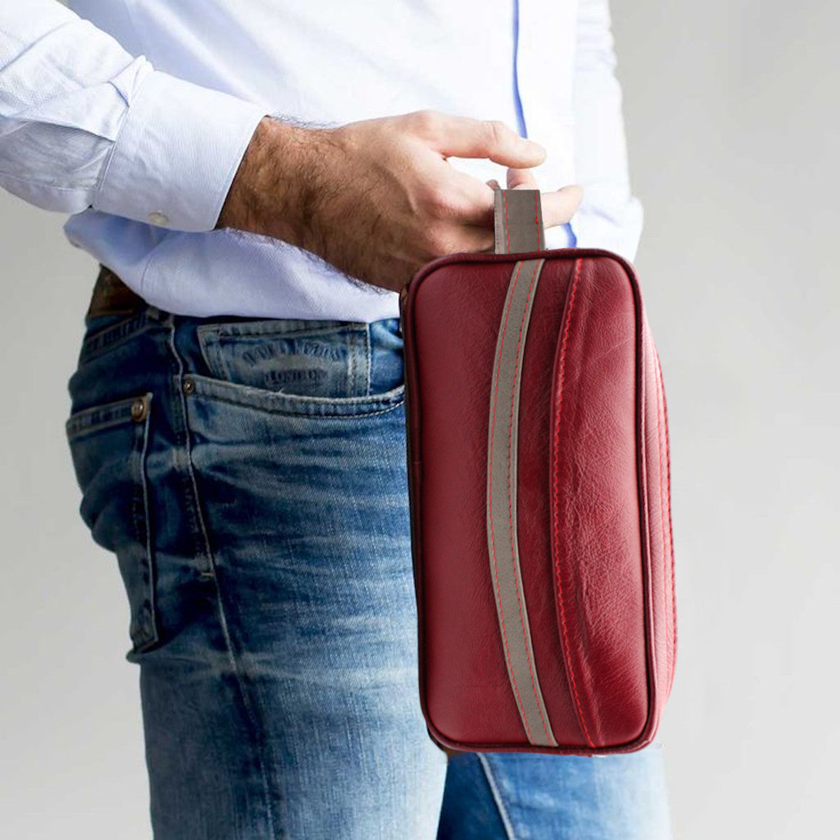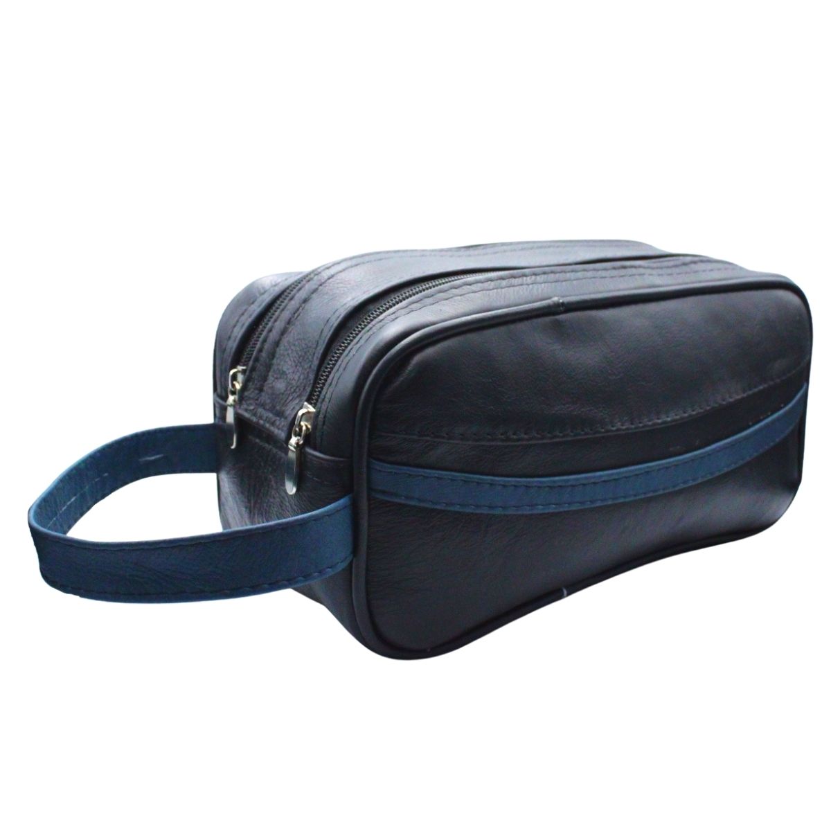 Neceser Hombre Piel Genuina Franja Interiores en Tela