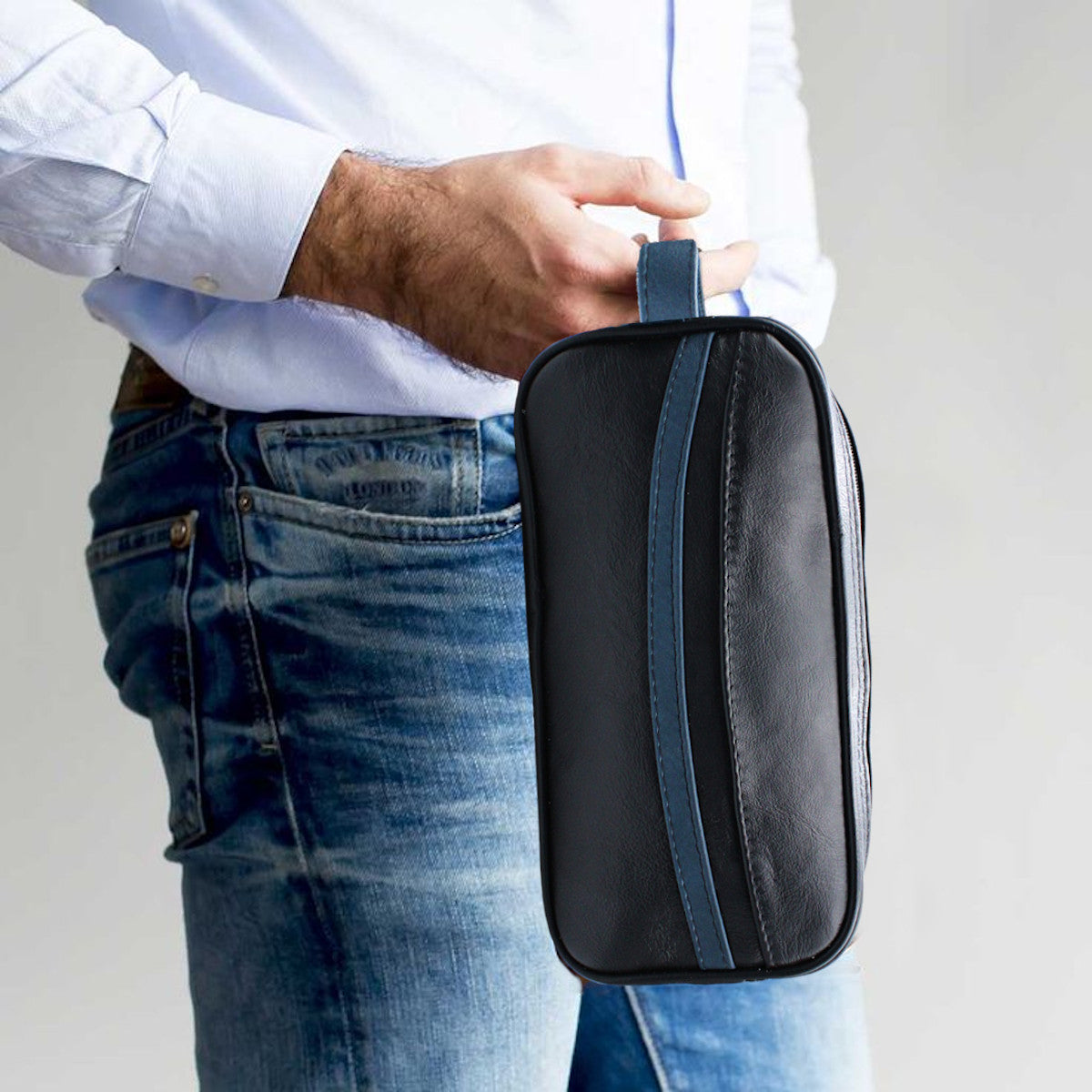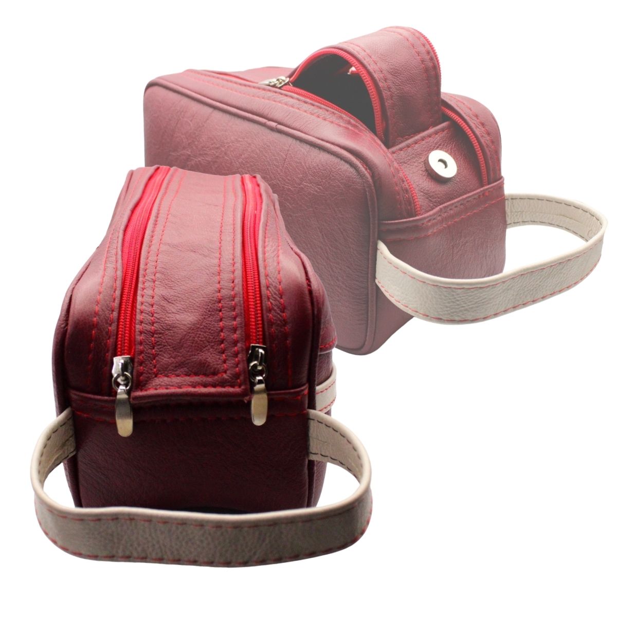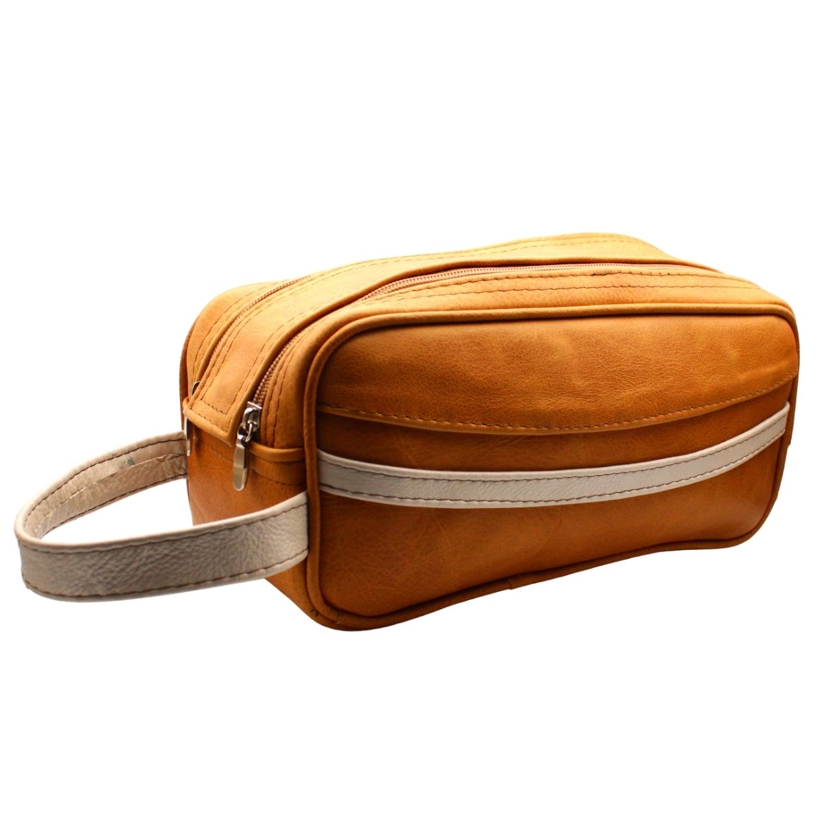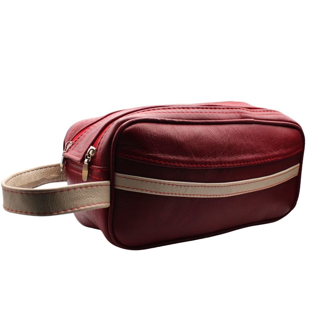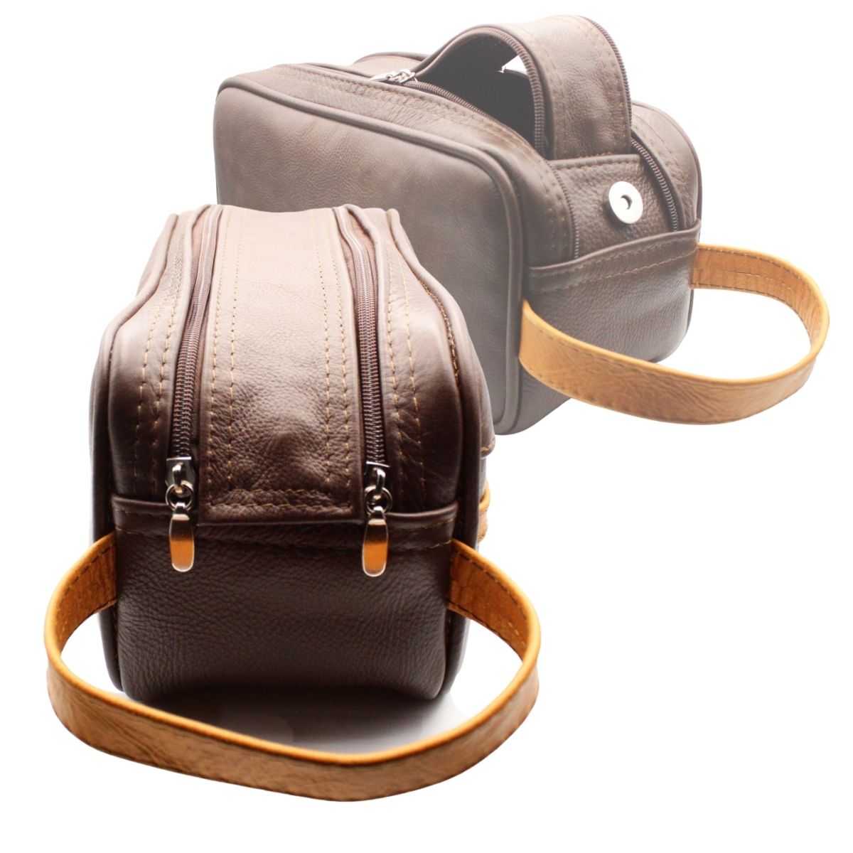 Neceser Hombre Piel Genuina Franja Interiores en Tela