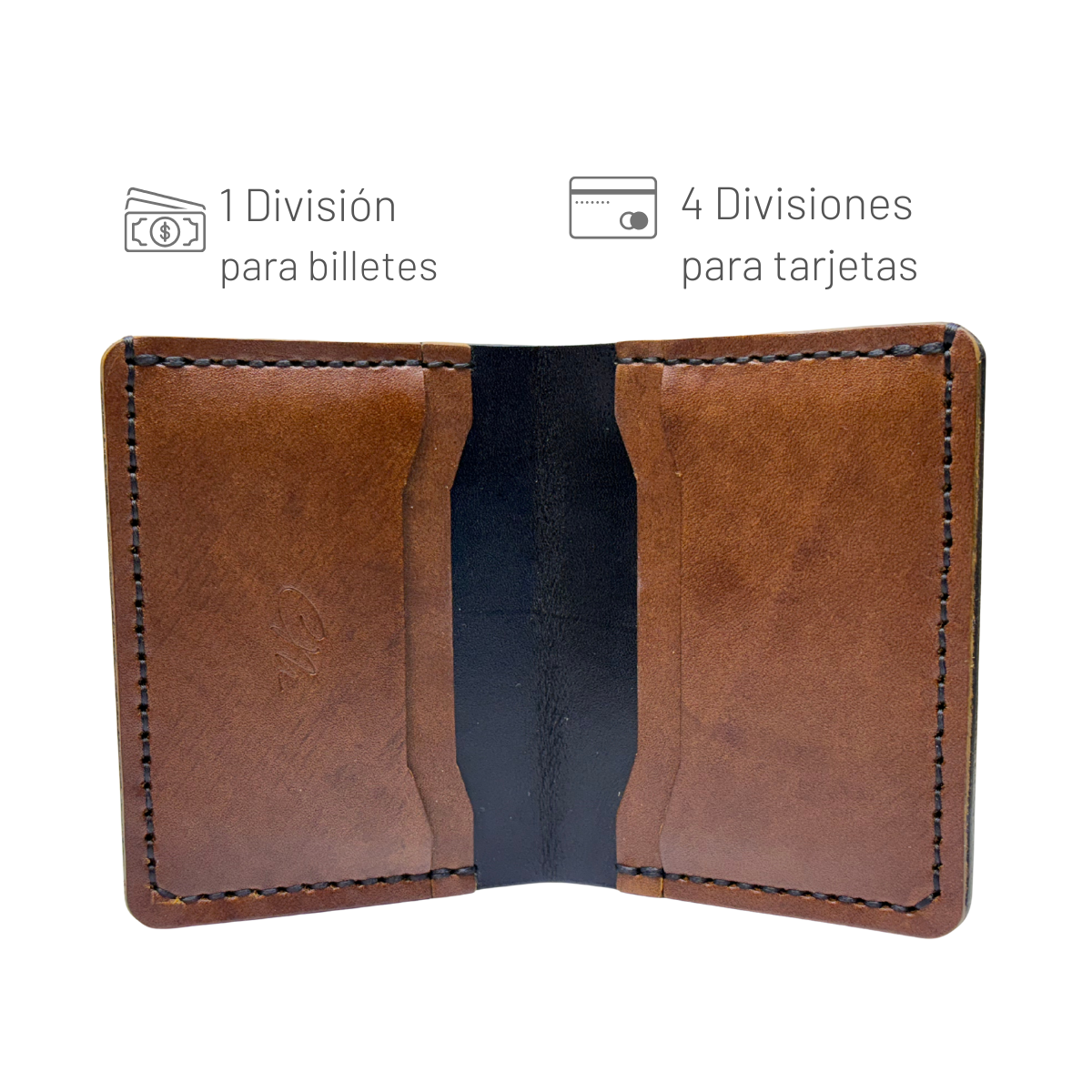 Tarjetero Plegable Hecho a Mano Piel Genuina Res